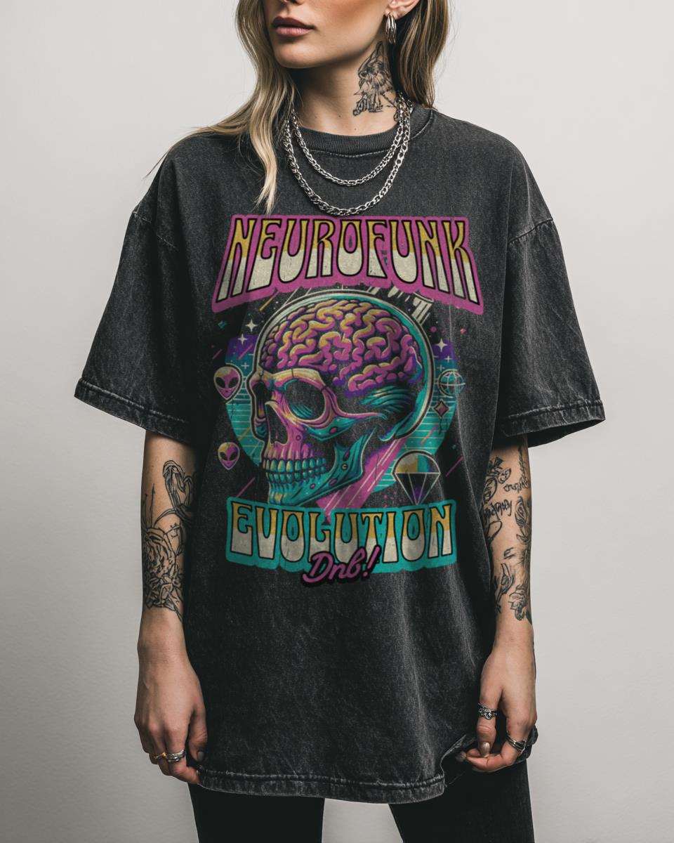 Feel the beat and showcase your love for drum & bass music! Dive into the rhythm with this ‘NEUROFUNK – Dnb Evolution’ graphic tee, featuring a vibrant teal and pink design. Perfect for DJs, ravers, and fans of drum n bass, jungle, EDM, and bass music, this shirt celebrates the dynamic energy and evolution of…