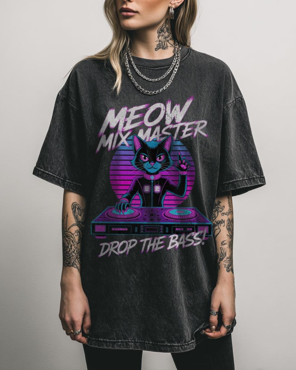 Ready to drop the beat with retro futuristic vibes? Step into the neon glow with our “Synthwave Cat DJ” T-Shirt, a purr-fect blend of retro 80s aesthetic, vaporwave style, and cyberpunk cool. This design features a feline DJ spinning tracks, ideal for electronic music lovers, EDM festival-goers, and anyone who lives for rave party vibes…