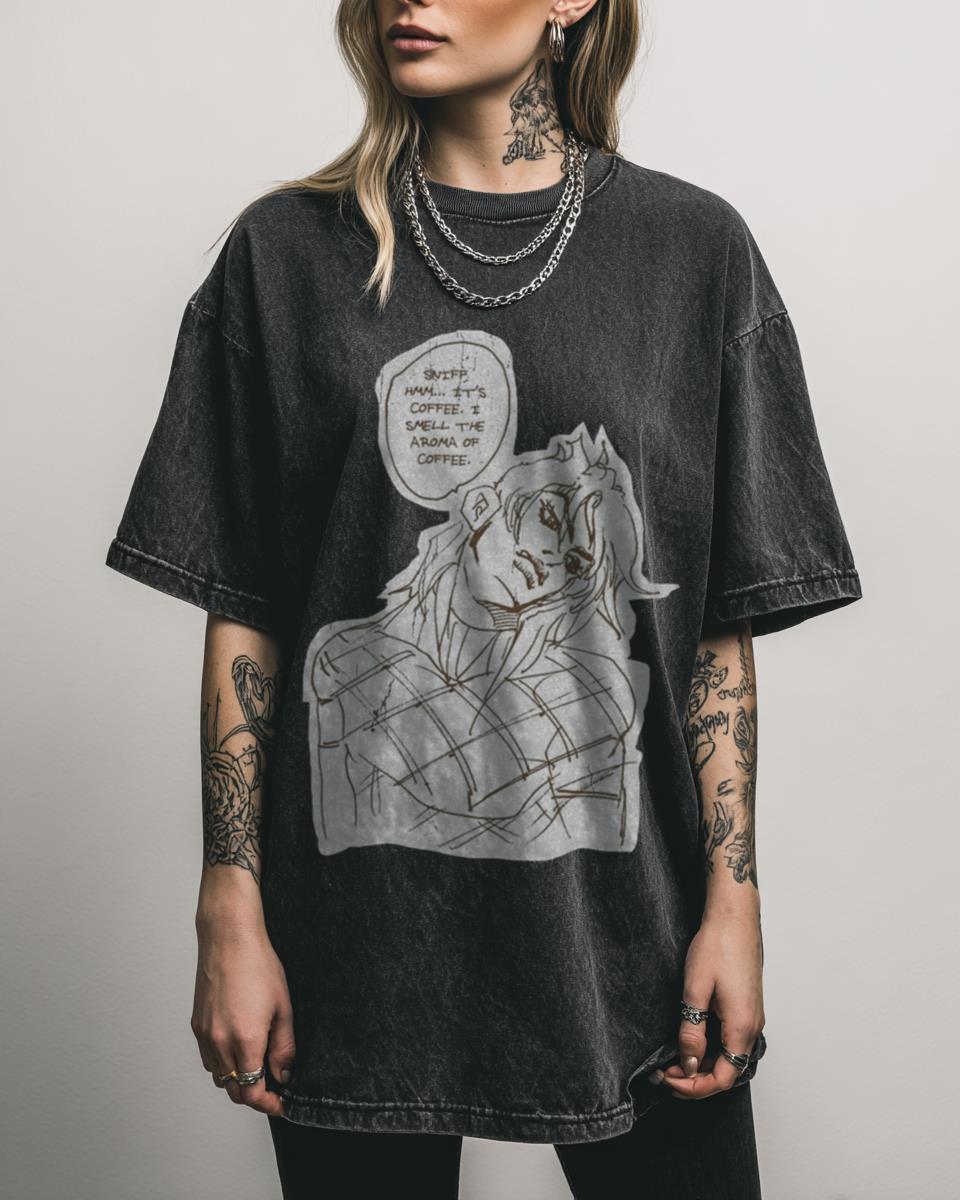 Do you miss the comforting (and chilling) atmosphere of Anteiku Coffee? Step into the world of Tokyo Ghoul with this ‘Anteiku Coffee’ graphic t-shirt! This design pays homage to the iconic coffee shop, a central hub for characters like Kaneki Ken, Touka, Hide, Nishio, and Yoshimura. It’s a subtle yet recognizable piece for any fan…
