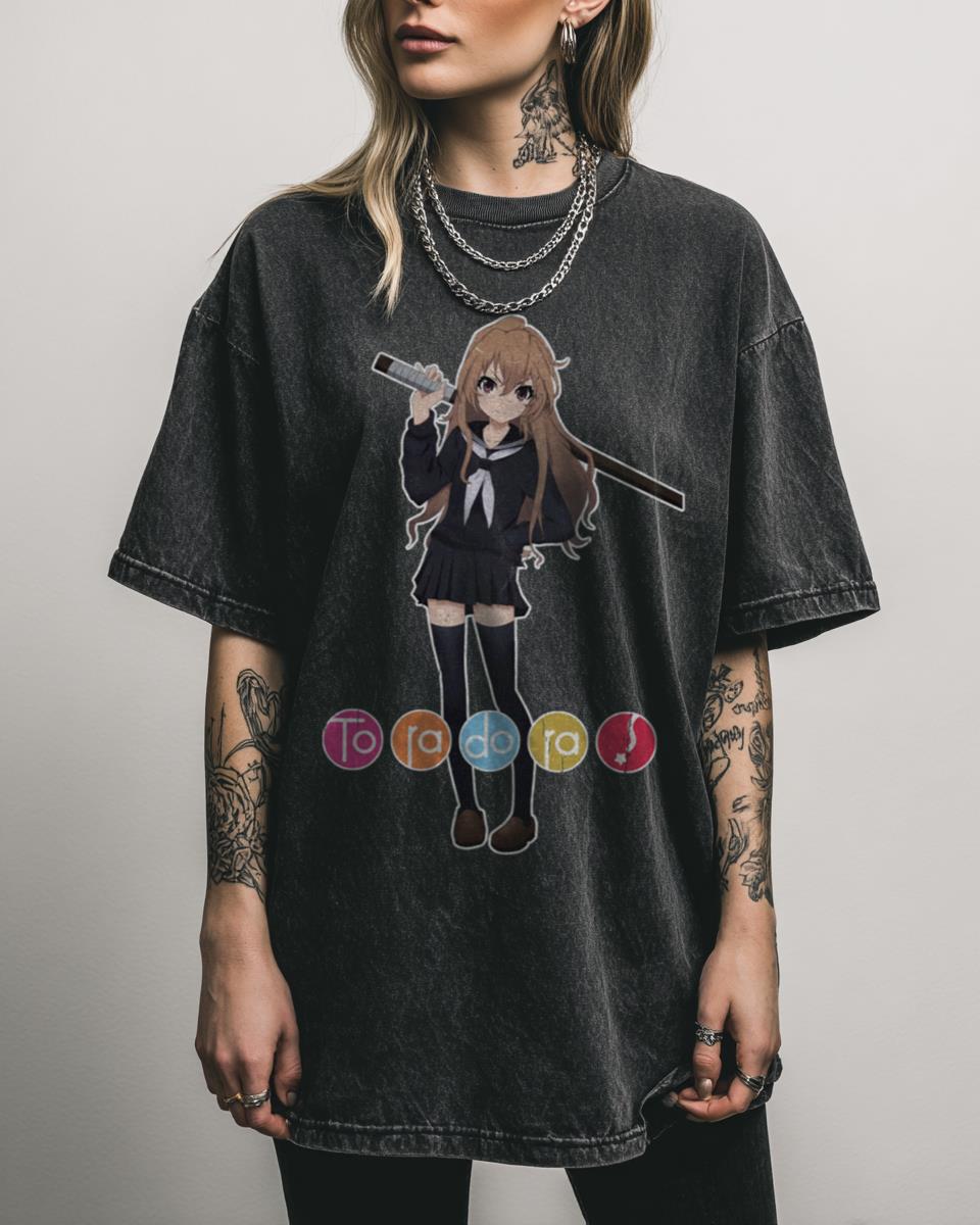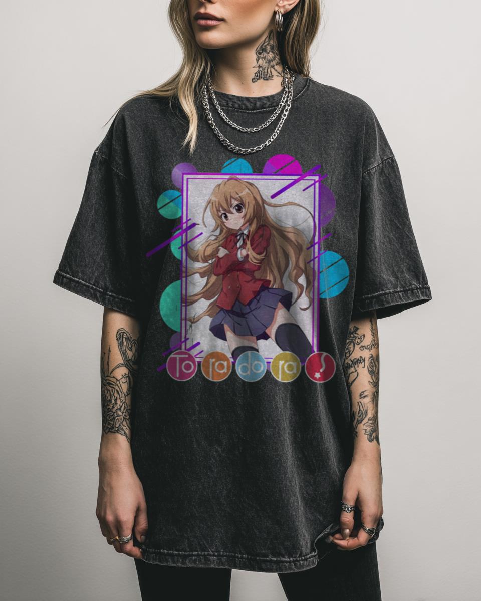 Are you a fan of heartwarming romantic comedies with a fierce tiger spirit? Embrace the vibrant world of Toradora! with this cute and colorful graphic tee. Featuring playful elements inspired by the beloved anime, including a tiger and cat motif, this design captures the funny and sweet essence of the series. Perfect for fans of…