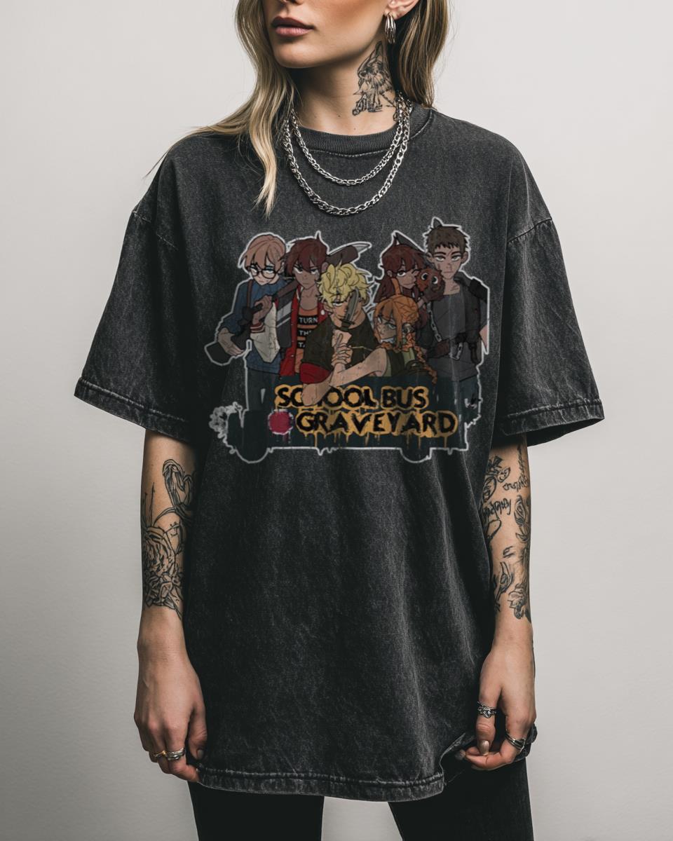 Are you a loyal follower of the thrilling School Bus Graveyard webtoon? Join the ‘Friends Gang’ with this ‘School Bus Graveyard’ t-shirt, celebrating the beloved characters and eerie adventures of the popular webtoon and manga series. Featuring Aiden, Ashlyn, Logan, and Taylor, this design is perfect for fans of SBG Chapters 1 and 2. Why…