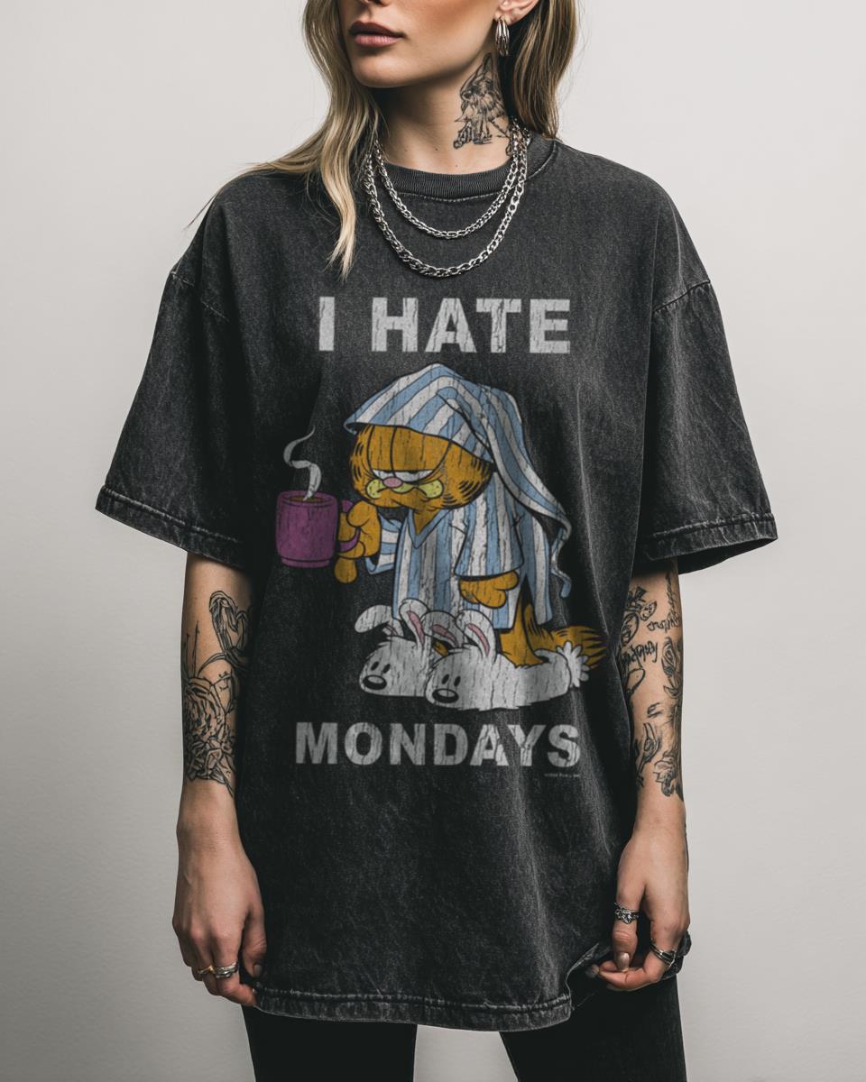 Why This Garfield “I Hate Mondays” Coffee Cartoon T-Shirt is Perfect? Embrace your inner lazy cat with this Garfield “I Hate Mondays” coffee cartoon T-shirt. Featuring a fan-inspired graphic of Garfield with his iconic sentiment, this black acidwash tee is crafted from 100% heavyweight cotton for comfort and a dose of relatable humor. Key Features…