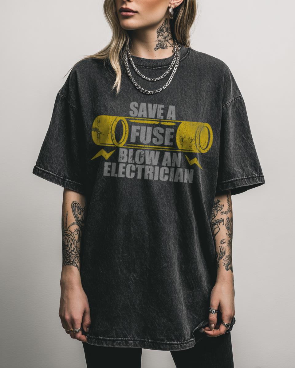 Looking for a Shockingly Funny Electrician T-Shirt? Spark some laughter with this funny Electrician T-shirt, featuring the witty slogan “Save A Fuse Blow An Electrician.” This electrician humor graphic tee is perfect for tradesmen, electrical workers, or anyone who appreciates a good, industry-specific joke. It comes on a stylish black acidwash background for an extra…