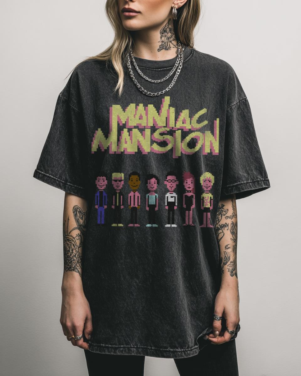 Step back in time to the golden age of adventure gaming? This nostalgic design celebrates ‘Maniac Mansion’, the classic point-and-click adventure game from LucasArts, originally on the Commodore 64 (C64). It features the iconic crew and title, perfect for retrogaming enthusiasts and fans of early PC gaming history. Why This Maniac Mansion Retro Gaming Tee…