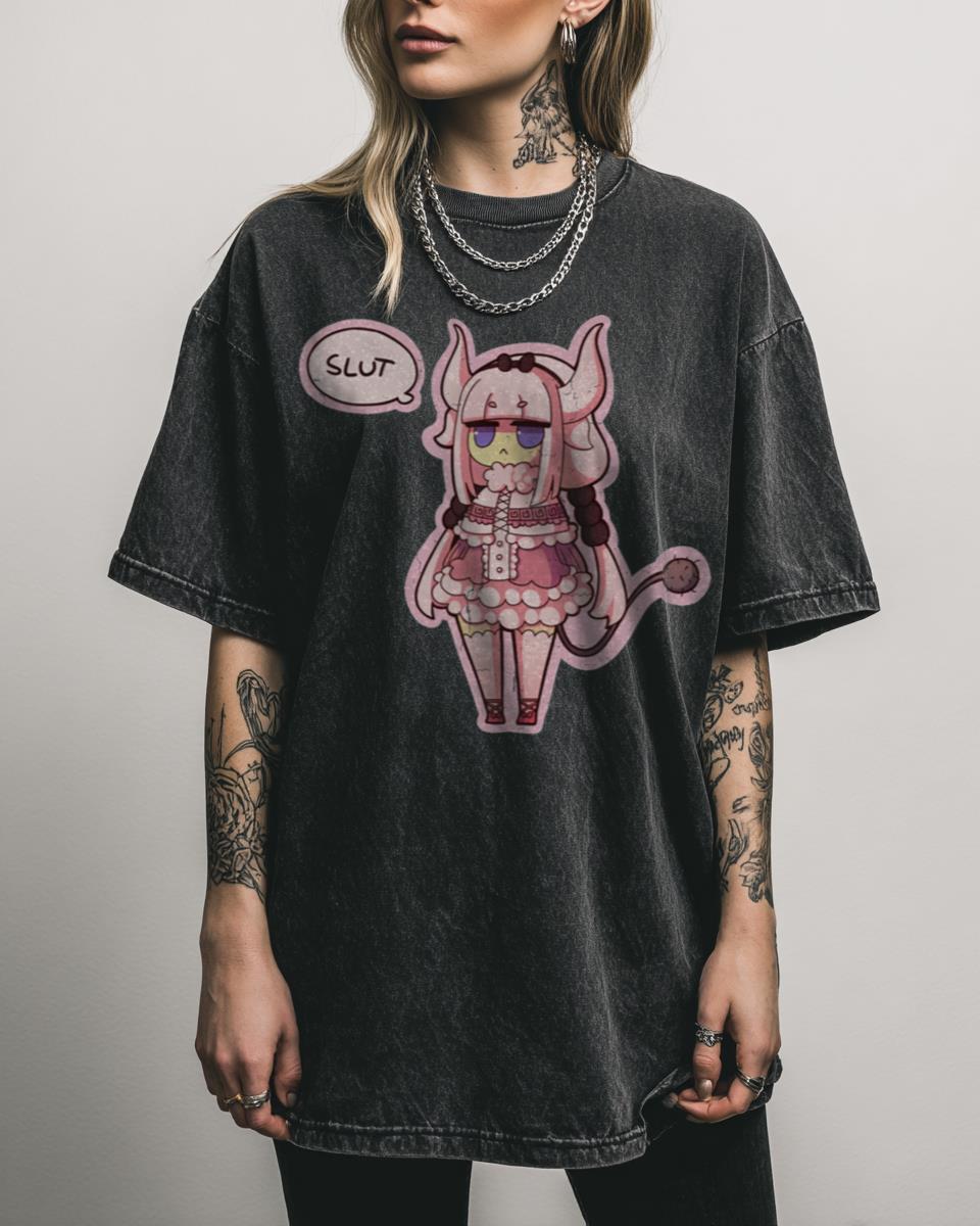 Looking for an edgy anime fan statement? This graphic tee features an anime girl in a style reminiscent of “Miss Kobayashi’s Dragon Maid,” designed for those who appreciate bold and sometimes controversial anime aesthetics. It’s a unique piece for fans who enjoy expressing their edgy side through their clothing, celebrating specific subgenres of anime art….