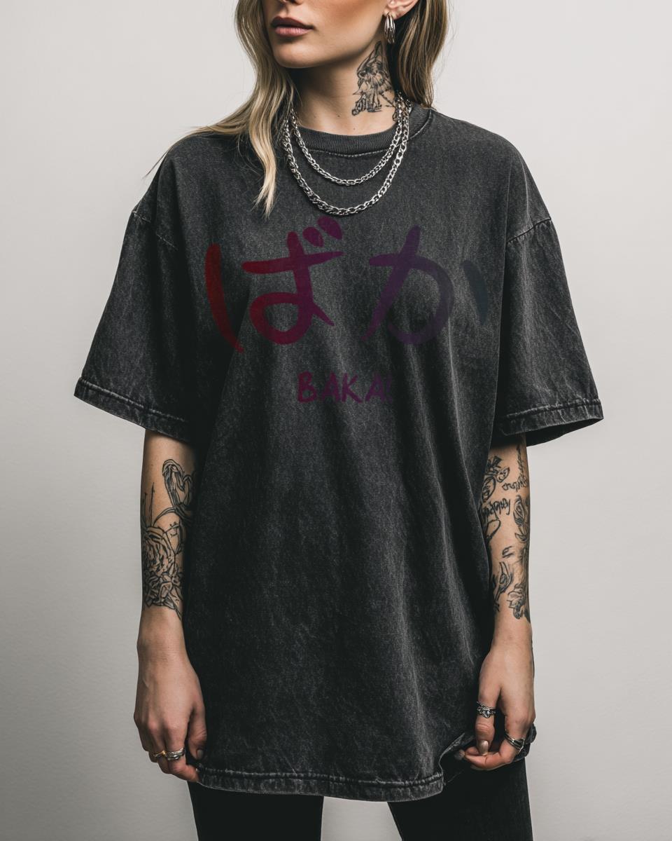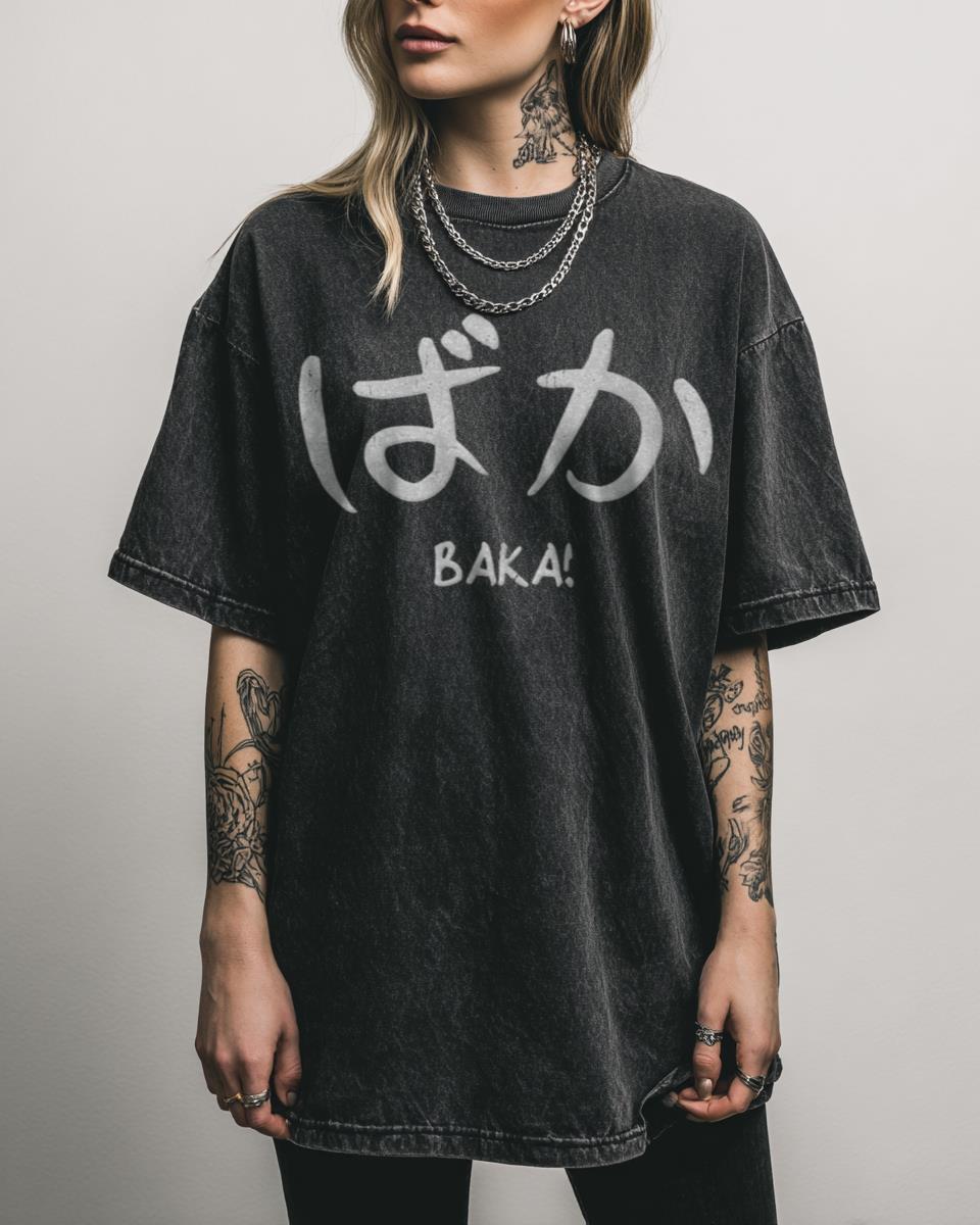 Do you enjoy playful Japanese anime phrases and want to add a touch of kawaii humor to your wardrobe? This fun graphic tee features the popular Japanese word ‘Baka’ (meaning ‘idiot’ or ‘fool’) in a cute anime style. It’s a humorous and light-hearted design perfect for anime fans, manga readers, and cosplayers who appreciate Japanese…