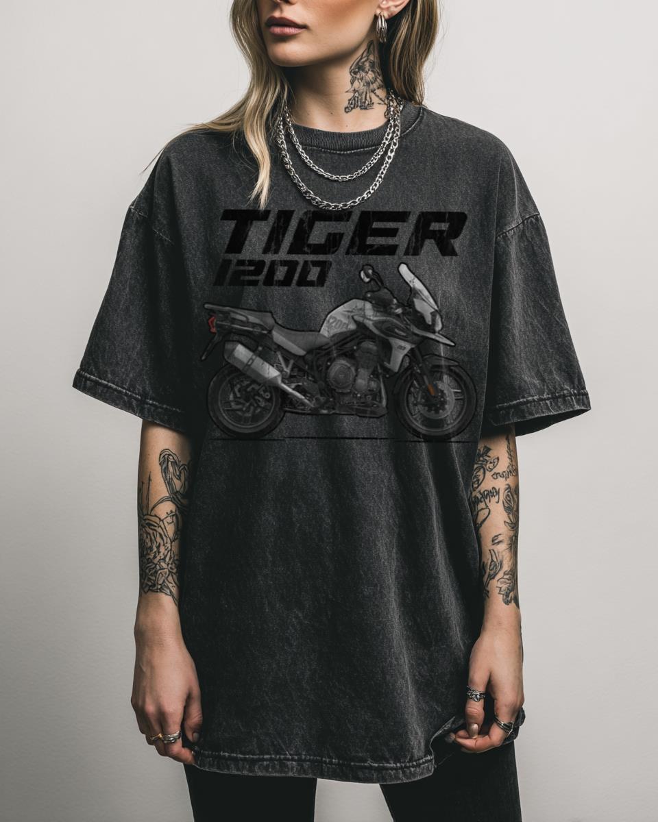 Feel the thrill of the open road and off-road adventures with the ‘Tiger 1200’! Hit the trails or the highway with this ‘Tiger 1200’ T-shirt, a retro-vintage cartoon graphic perfect for bikers and motocross enthusiasts. This design captures the spirit of adventure, motolife, and the iconic Tiger motorcycle, blending a classic aesthetic with the excitement…