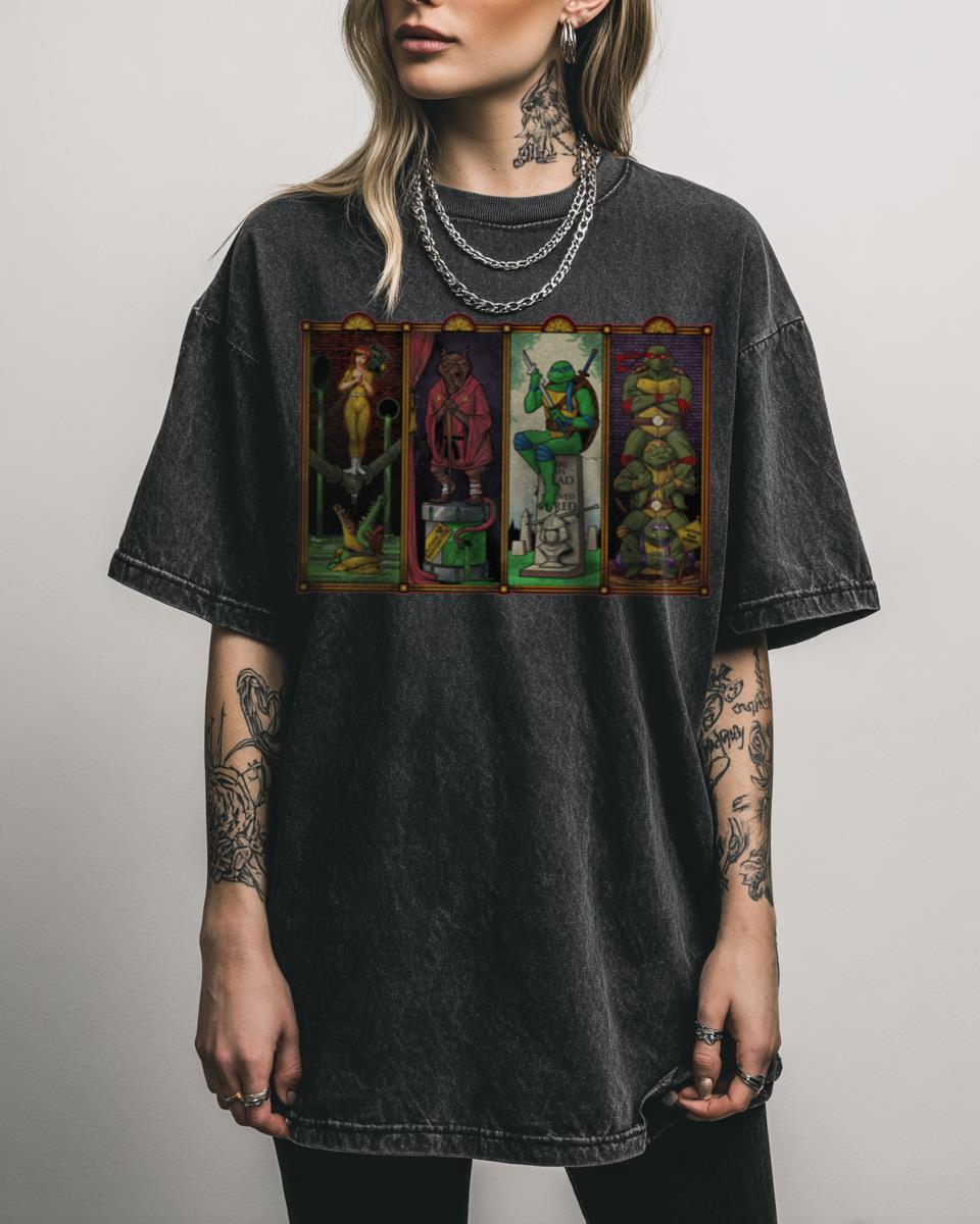 What happens when the Teenage Mutant Ninja Turtles meet a haunted mansion? Enter ‘The Haunted Sewer,’ a clever parody design that reimagines the TMNT characters in a spooky, Haunted Mansion-inspired setting. Featuring Leonardo, Donatello, Michelangelo, Raphael, Splinter, April O’Neil, and even Shredder as ghostly portraits, this unique graphic is perfect for fans of both classic…
