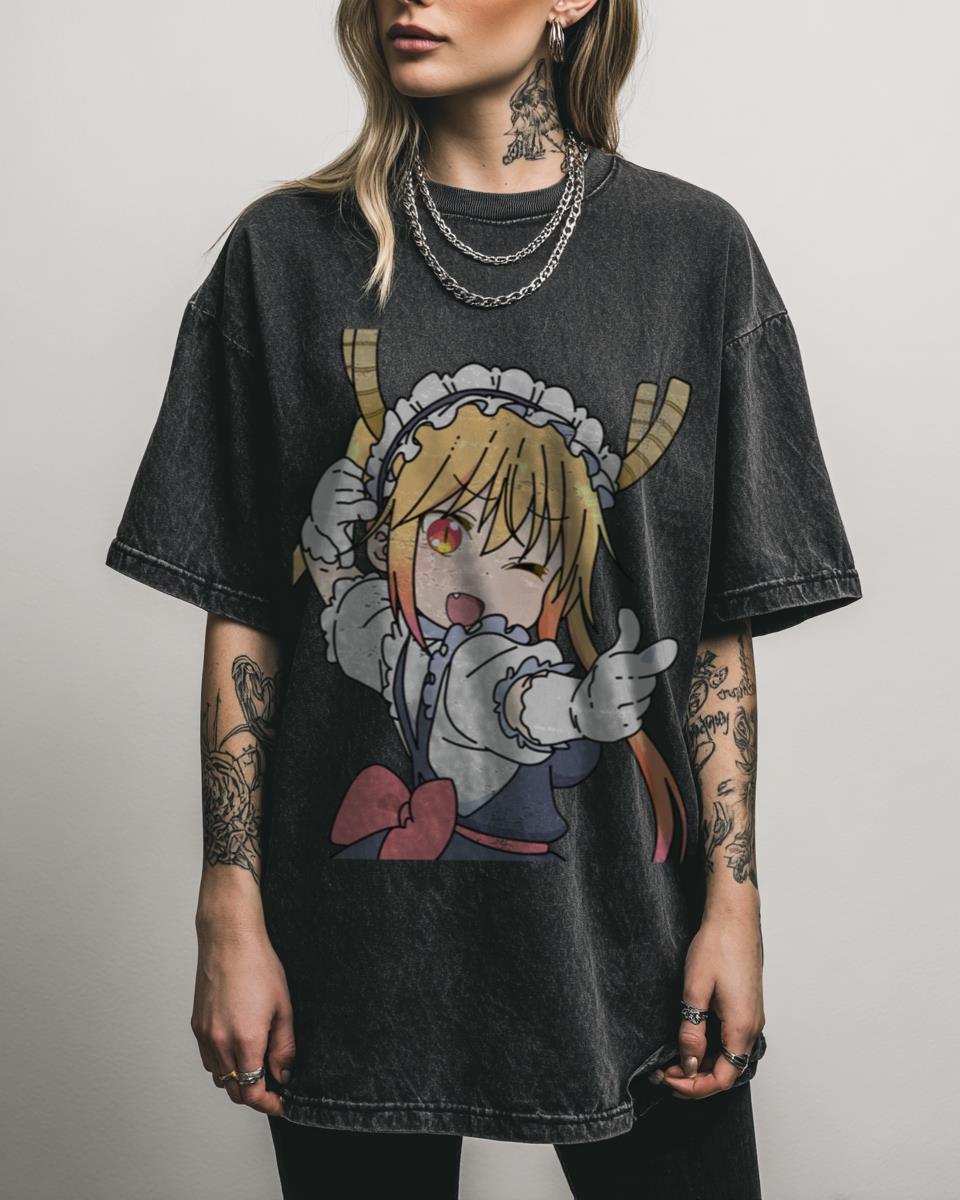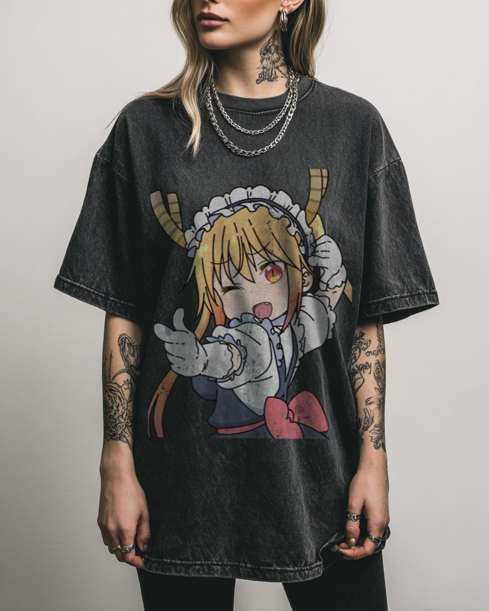 What Makes This Tohru Maid Dragon T-Shirt a Fan Favorite? Showcase your love for Miss Kobayashi’s Dragon Maid with this playful Tohru Pointing Pose T-shirt. Featuring the iconic dragon maid in a fun graphic, this black acidwash tee is a charming addition to any anime fan’s collection. Why This Maid Dragon Tohru Tee is a…