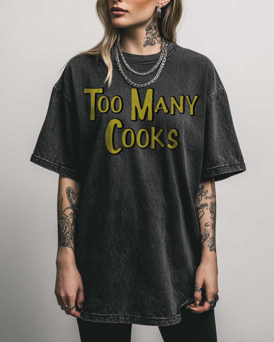 Remember that unforgettable, surreal Adult Swim fever dream, ‘Too Many Cooks’? Relive the viral sensation with the ‘Too Many Cooks’ T-shirt! This hilarious design pays homage to the cult classic Adult Swim short, featuring elements that recall its absurd humor, endless intro, and iconic characters like Smarf. Perfect for fans of quirky comedy, retro TV,…