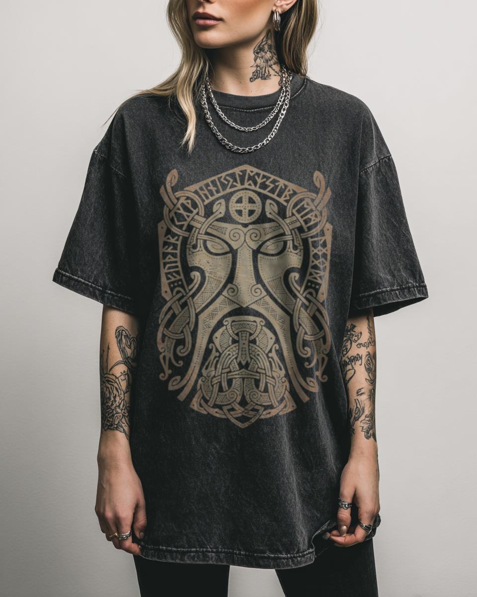 What Makes This Thor Godmask Viking T-Shirt a Legendary Choice? Embody the power of the Norse gods with this Thor Godmask Viking T-shirt, featuring a stylized design inspired by ancient mythology and intricate knotwork. This powerful graphic tee, perfect for fans of Viking culture and fantasy art, is printed on a unique black acidwash fabric,…