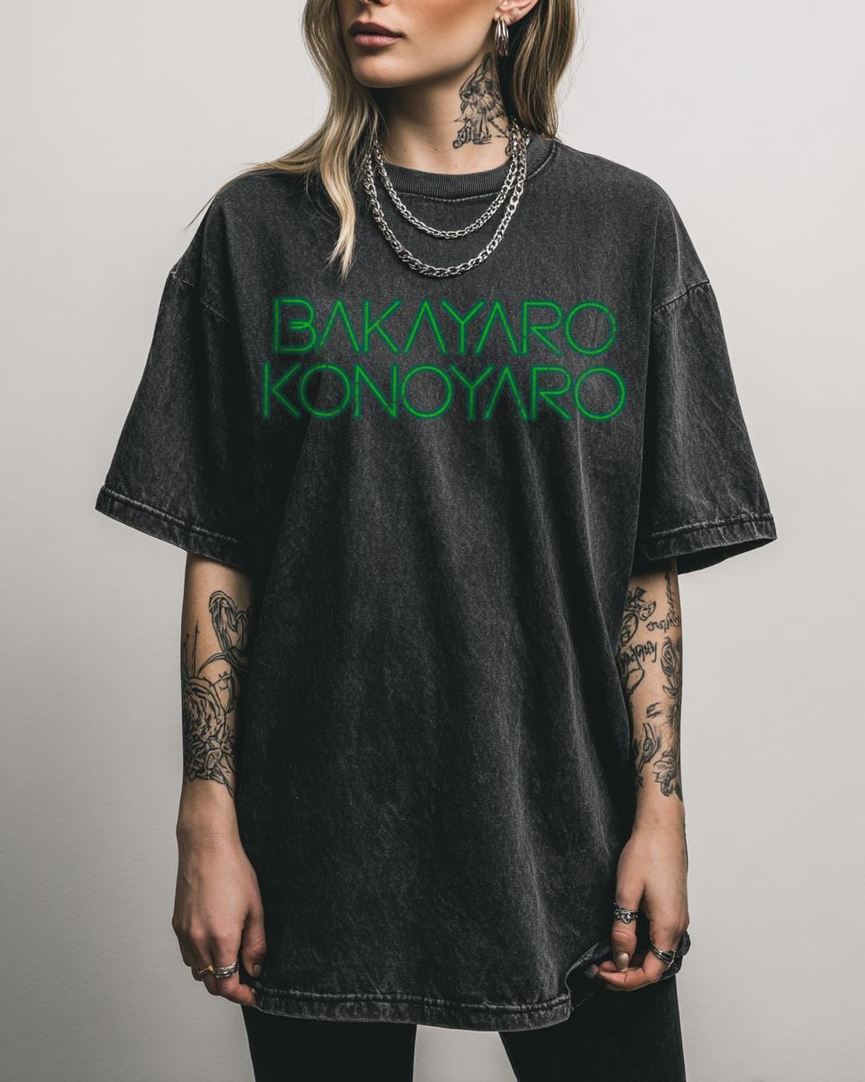 Curious About the ‘Bakayaro Konoyaro’ Meaning? Find Out Here! Wear your favorite anime phrase with this **Killer Bee ‘Bakayaro Konoyaro’ meaning anime tee**! This fan-created design celebrates the iconic Naruto quote and its playful, yet strong, meaning. Perfect for otaku, weeaboos, and anyone who appreciates Japanese words in pop culture. The stylish black acidwash finish…