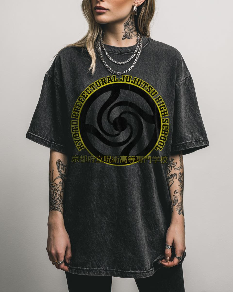 Are you ready to enroll in the elite world of Jujutsu Sorcerers? This design proudly displays “Kyoto Prefectural Jujutsu High School,” the esteemed institution from the hit anime series Jujutsu Kaisen. Perfect for fans of Satoru Gojo, Yuuji Itadori, and the thrilling world of cursed energy, this graphic is a must-have for any JJK enthusiast….
