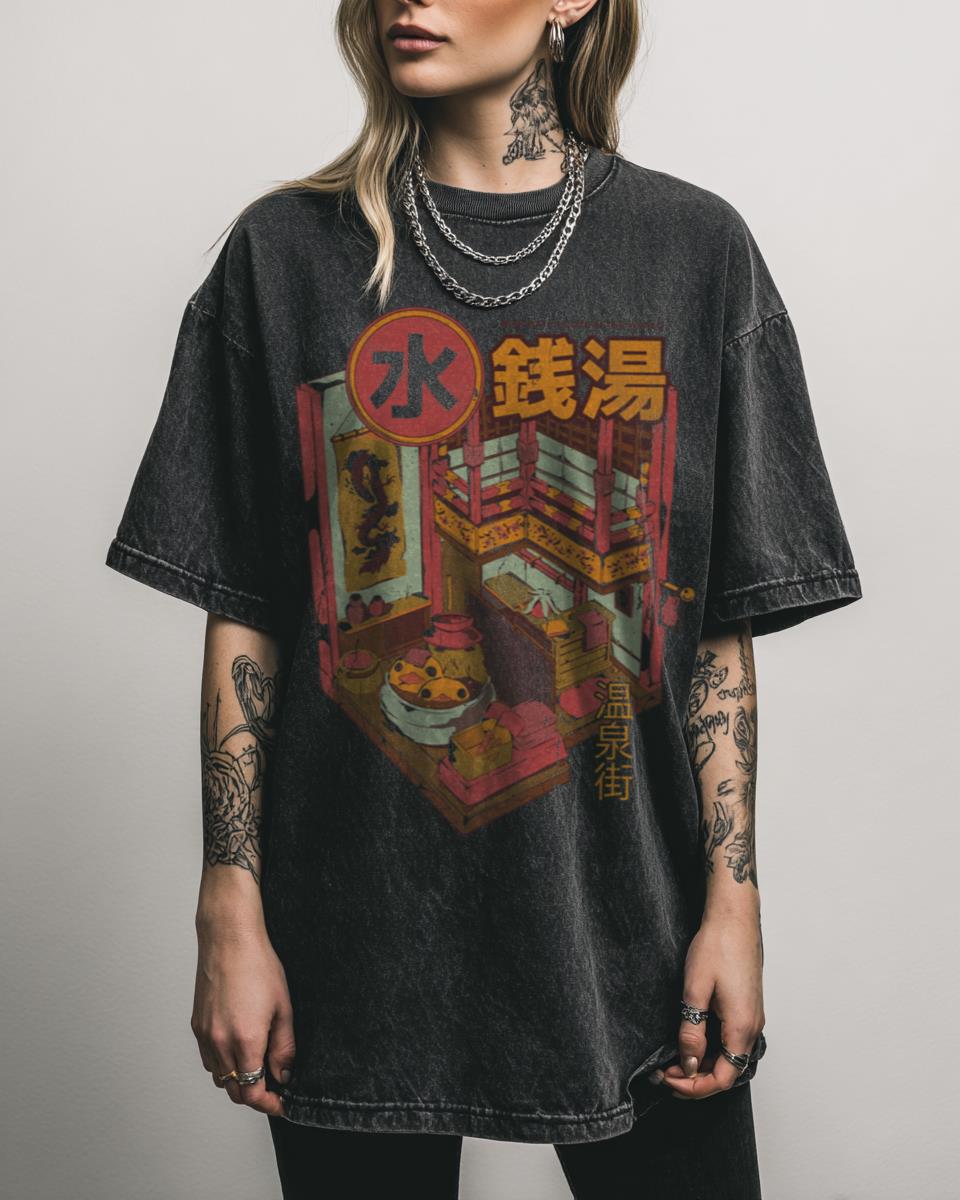 Transport yourself to a magical, enchanting world? Immerse yourself in the enchanting atmosphere of a traditional Japanese Bath House with this beautiful graphic tee, reminiscent of beloved anime films. This design evokes the magical and mysterious feel of iconic animation, perfect for fans of Studio Ghibli and classic Japanese cinema. It’s a serene and artistic…