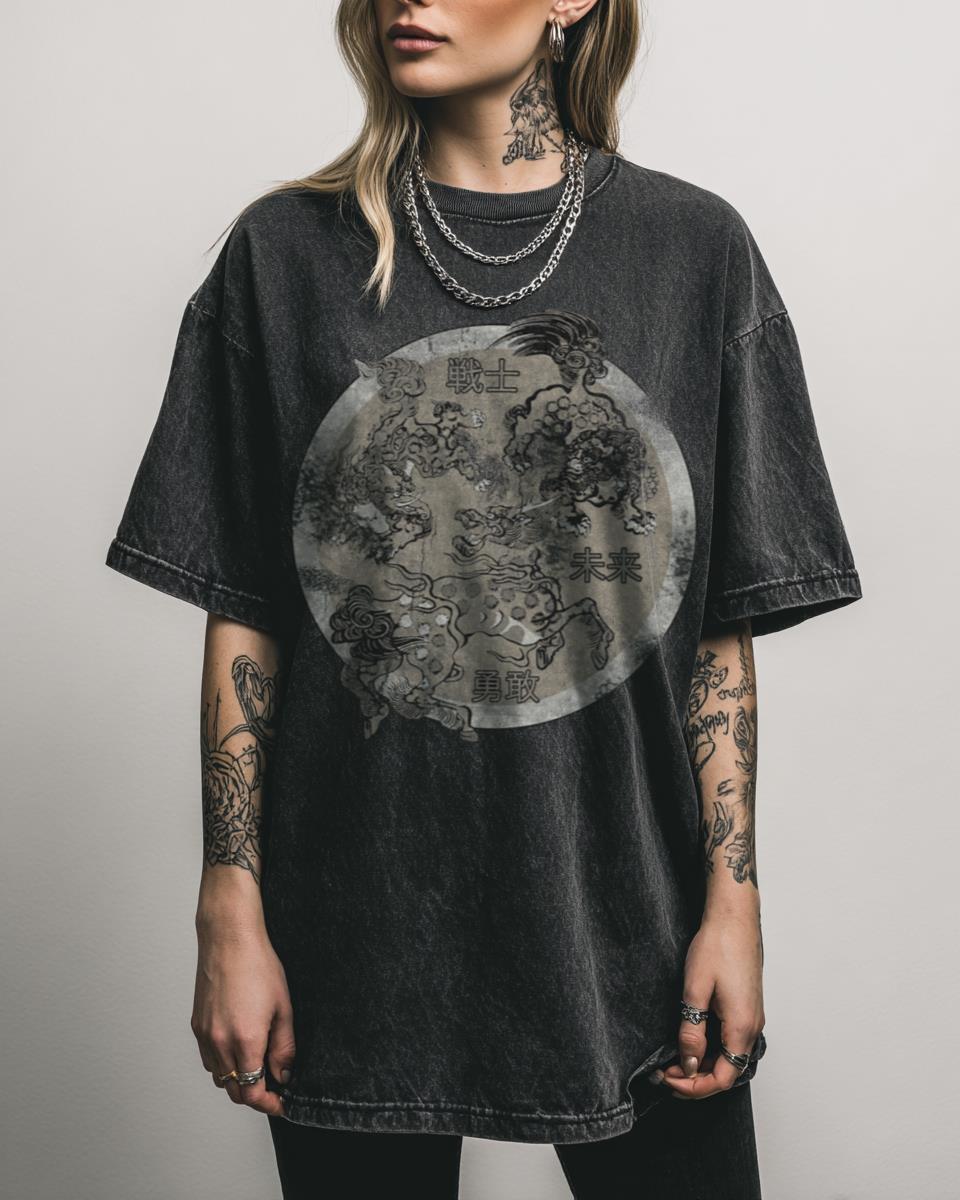 Fascinated by ancient legends and mythical beasts? Step into a world of enchanting folklore with this unique ‘Distressed Style Vintage Japanese Mythical Creatures’ T-shirt. Featuring intricate line art illustrations of creatures like the Baku and Qilin, this design captures the essence of Japanese mythology with a beautifully aged, vintage aesthetic. It’s a wearable piece of…