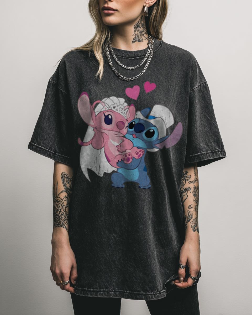 Celebrate the adorable alien couple, Stitch and Angel, with this charming design! This cute graphic features Stitch and his beloved counterpart, Angel, from the Disney classic Lilo & Stitch. It’s a heartwarming design that captures their mischievous yet loving bond, perfect for fans of all ages. Why You’ll Love This T-Shirt: Adorable Stitch and Angel…