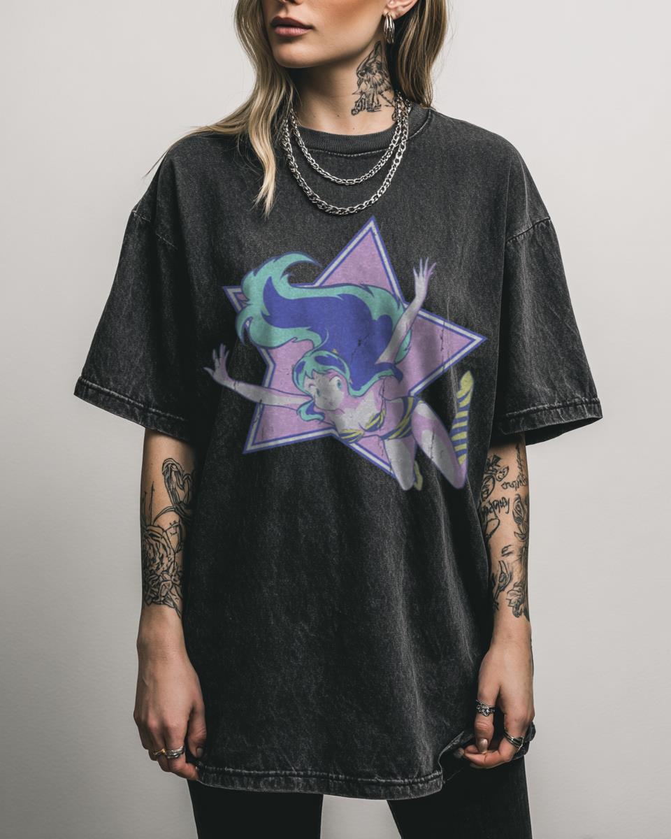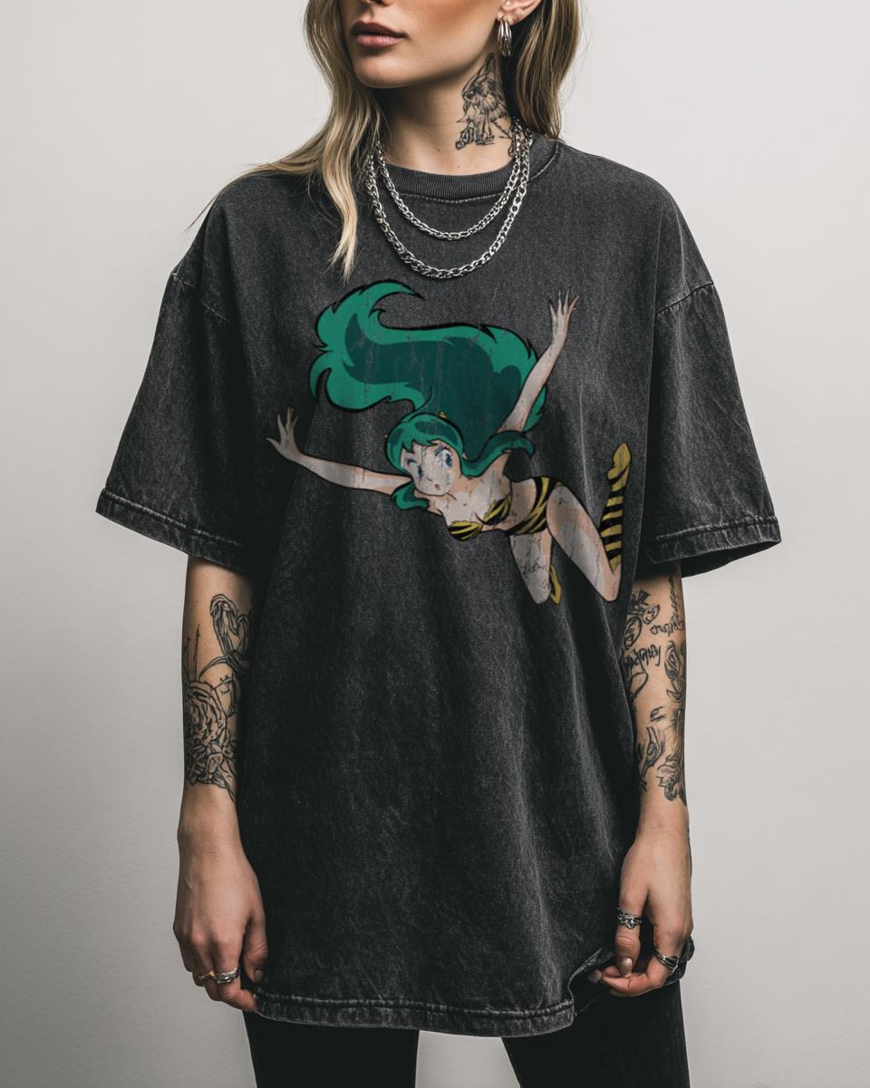 Do you cherish vintage anime aesthetics and iconic characters like Lum from Urusei Yatsura? Adorn yourself with this beautiful T-shirt featuring a pastel, retro illustration of Lum (Lamù) from ‘Urusei Yatsura.’ This design captures the cool and captivating essence of the alien anime girl in a soft, vintage Japanimation style, making it a perfect blend…