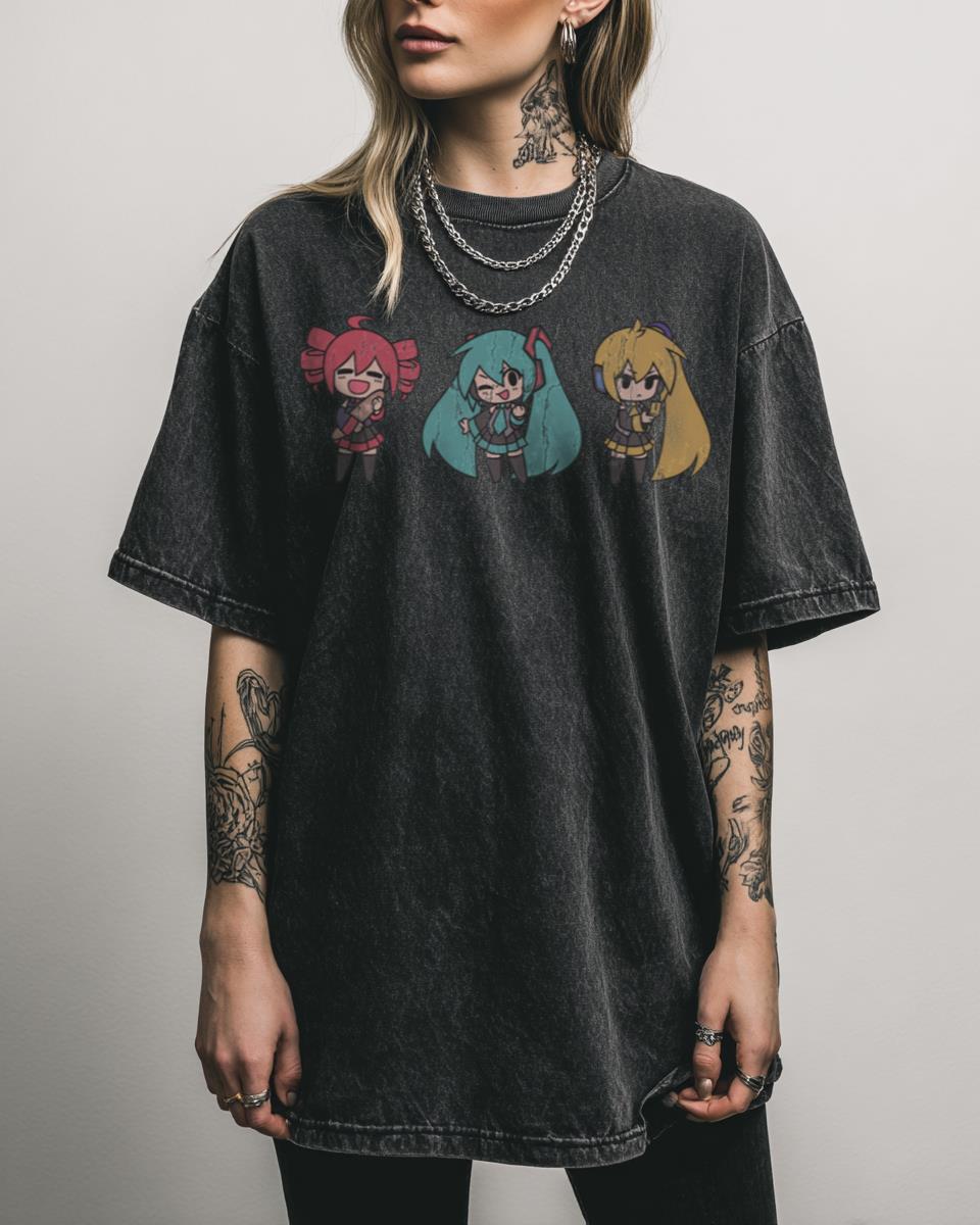 Are you a fan of Vocaloid and adorable chibi characters? Get ready to sing and dance with this super cute “Vocaloid Triple Baka Chibis” graphic tee! Featuring the beloved Hatsune Miku, Akita Neru, and Kasane Teto in their iconic chibi forms, this kawaii design is perfect for Vocaloid fans, anime lovers, and anyone who enjoys…