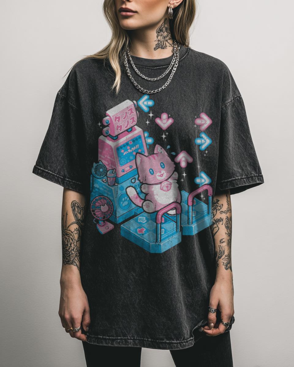 Ready to hit the arcade with the cutest dance partner ever? Get your groove on with this adorable ‘Dance Kitty’ T-shirt! Featuring a kawaii neko cat in a retro arcade setting, ready to bust a move. This design blends charming anime art with classic video game vibes, perfect for gamers, cat lovers, and anyone who…