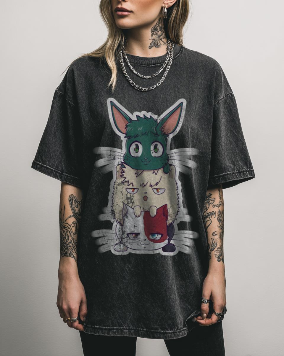 Meet the My Hero Academia Chibi Animal Trio! Embrace the cuteness of your favorite heroes with this My Hero Academia Chibi Animals T-shirt, featuring adorable “little animal” versions of Deku, Kacchan (Bakugo), and Shoto. This charming tee is perfect for MHA fans who love cute anime graphics and the iconic “Dynamite Trio” in a whole…