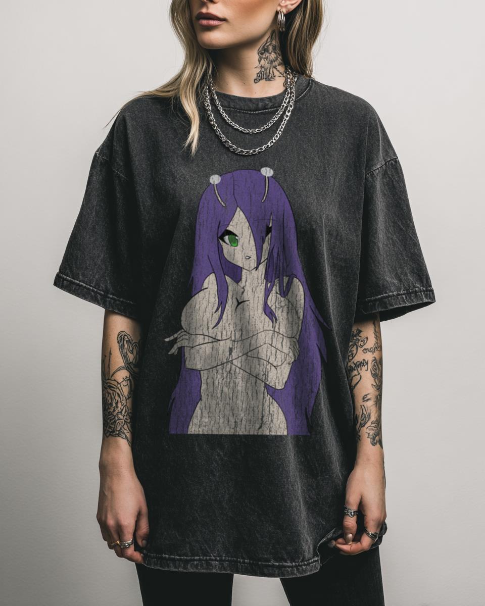 What Makes This Numi Anime Alien Girl T-Shirt a Unique Find? Discover the charm of the cosmos with this captivating Numi anime alien girl T-shirt. Featuring a beautiful manga style graphic reminiscent of Monster Musume, this black acidwash tee is a unique piece of Japanese art apparel for anime fans. Key Features of This Anime…