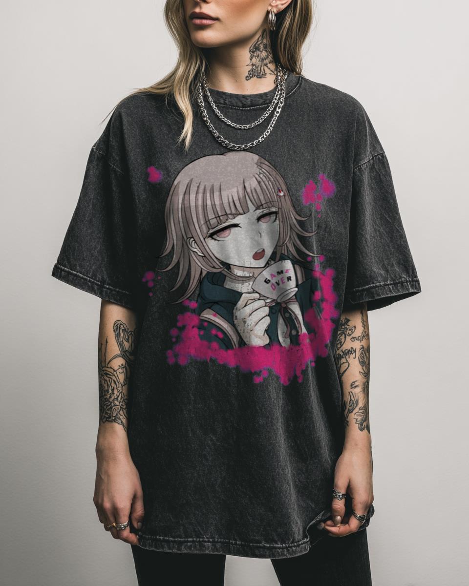 Are you a fan of Danganronpa and its unforgettable characters? Step into the world of the Killing Game with this striking ‘GAME OVER’ design featuring Chiaki Nanami. This artwork captures the essence of the ultimate Gamer Girl from Danganronpa V3, blending her iconic imagery with the dramatic ‘Game Over’ screen. It’s a perfect tribute to…