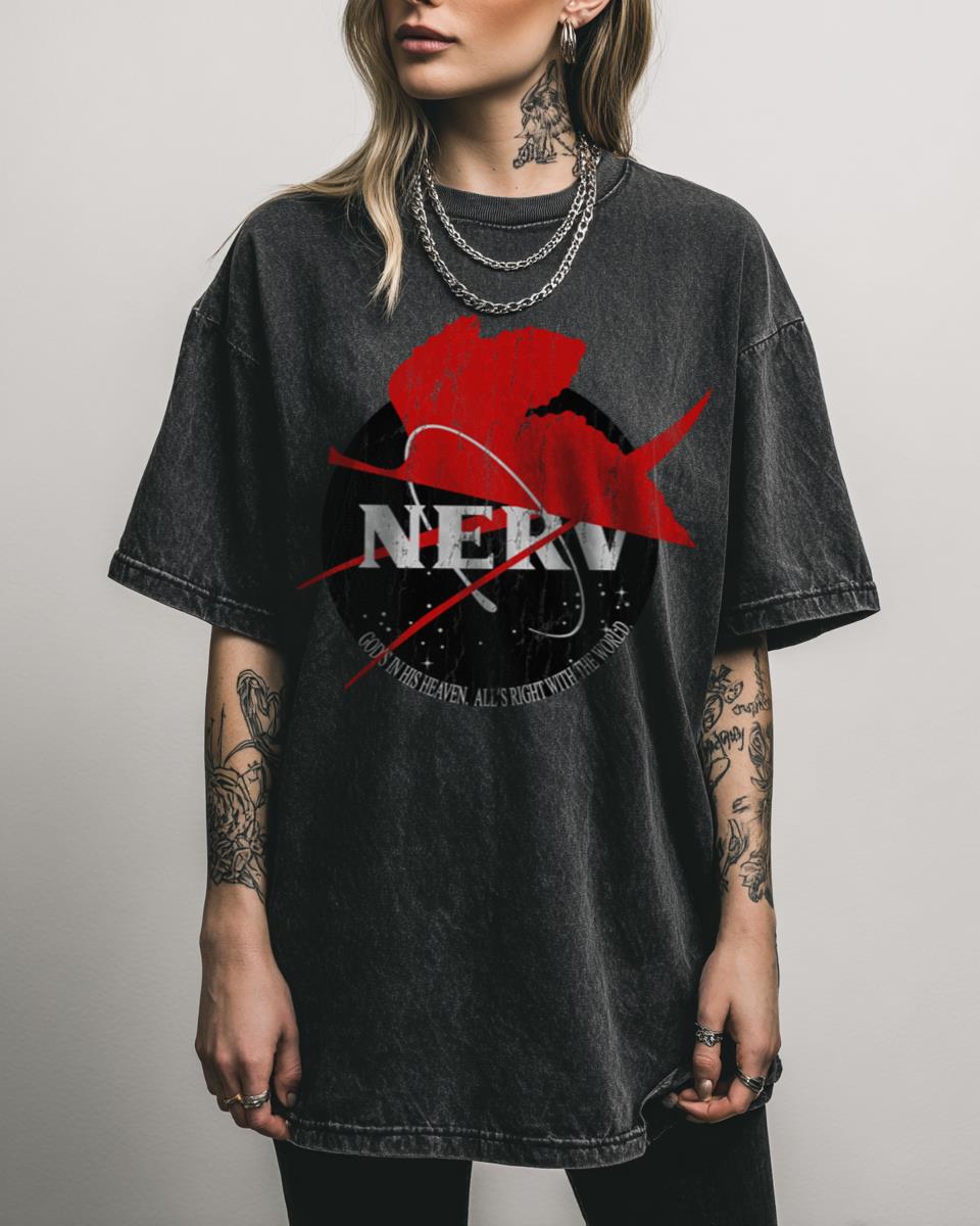 Ready to merge the iconic worlds of space and mecha with a cool vaporwave aesthetic? Explore the dark, aesthetic fusion of ‘NASA x NERV’ with this unique Evangelion design, infused with a vaporwave vibe. This graphic blends the familiar NASA logo with the ominous NERV emblem from ‘Neon Genesis Evangelion,’ set against a starry, dark…