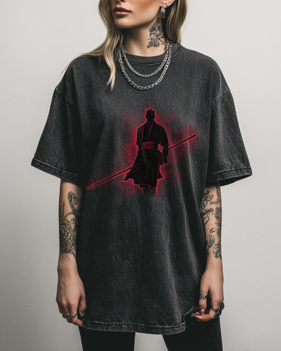Embrace the Dark Side with This Darth Maul Star Wars T-Shirt! Channel the power of the Sith with this Darth Maul Star Wars T-Shirt, a striking fan-inspired design featuring the iconic Sith Lord from the Prequel Trilogy. Perfect for fans of the Galactic Empire and epic space sagas, this black acidwash tee, made from 100%…