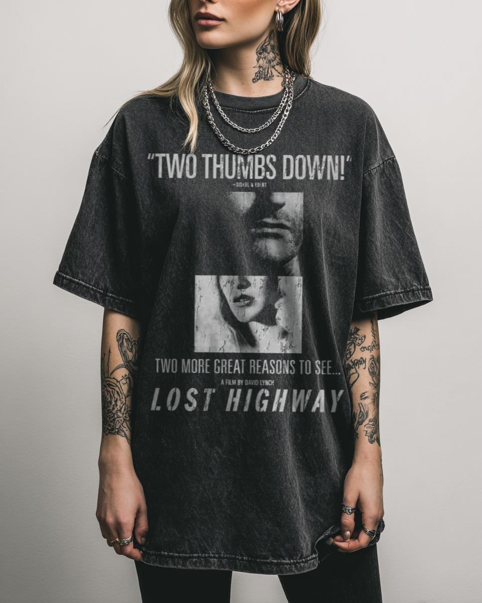 Are you a devoted fan of visionary director David Lynch and his surreal cinematic masterpieces? Dive into the enigmatic world of David Lynch with this ‘Lost Highway: Two Thumbs Down’ design! This graphic pays homage to the cult classic film, capturing its unique, vintage movie aesthetic. Perfect for film buffs, cinephiles, and fans of Lynch’s…