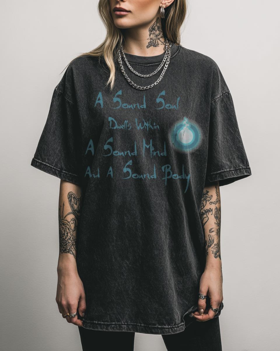 Do you strive for perfect symmetry and a sound soul? Embody the wisdom of Soul Eater with this ‘A Sound Soul’ T-shirt, featuring an iconic quote that resonates with fans of Death the Kid, Maka, and the entire crew. This blue-hued design captures the motivational spirit of the anime, perfect for those who appreciate deep…