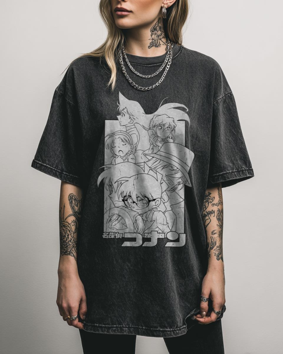 Are you a fan of mysteries, brilliant deductions, and classic 90s anime? Unravel the case with this awesome Detective Conan T-shirt! This design celebrates the iconic 90s anime and manga series, ‘Case Closed,’ featuring the brilliant Conan Edogawa (Shinichi Kudo) and beloved characters like Ran Mouri and Kogoro Mouri. It’s a nostalgic and cute tribute…