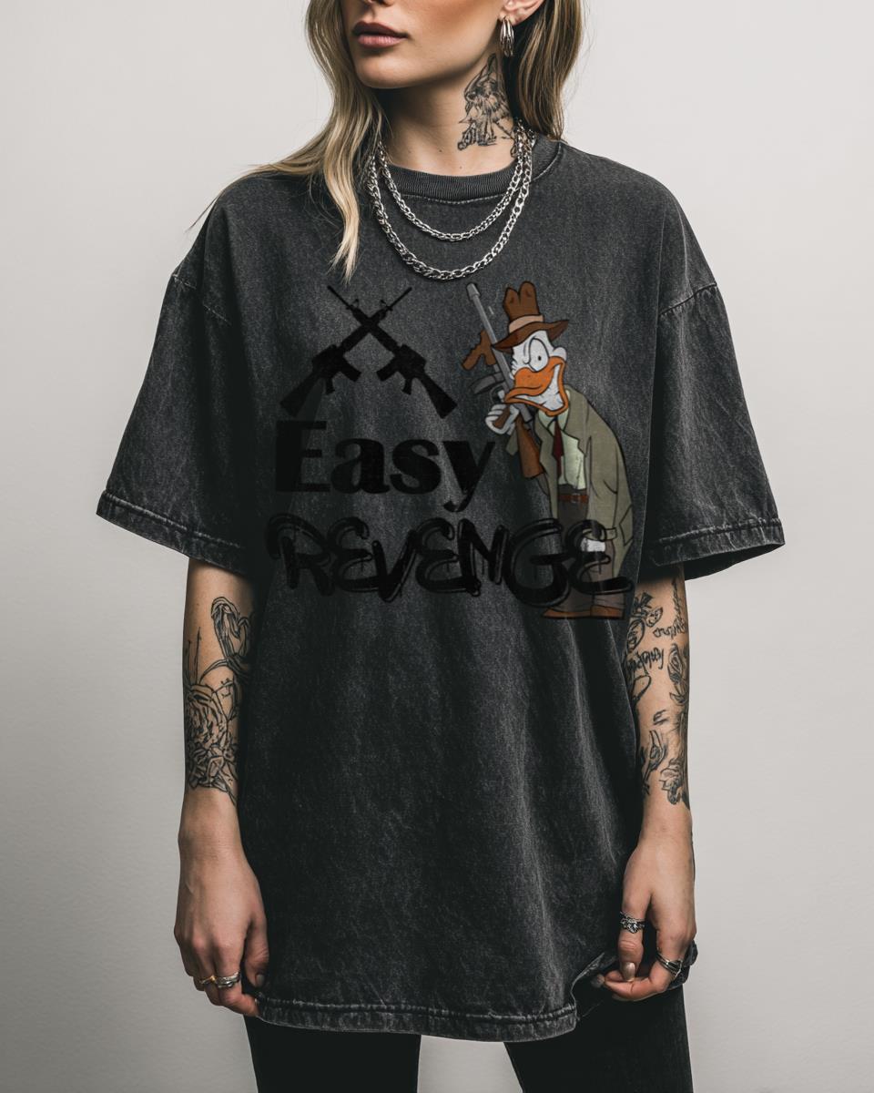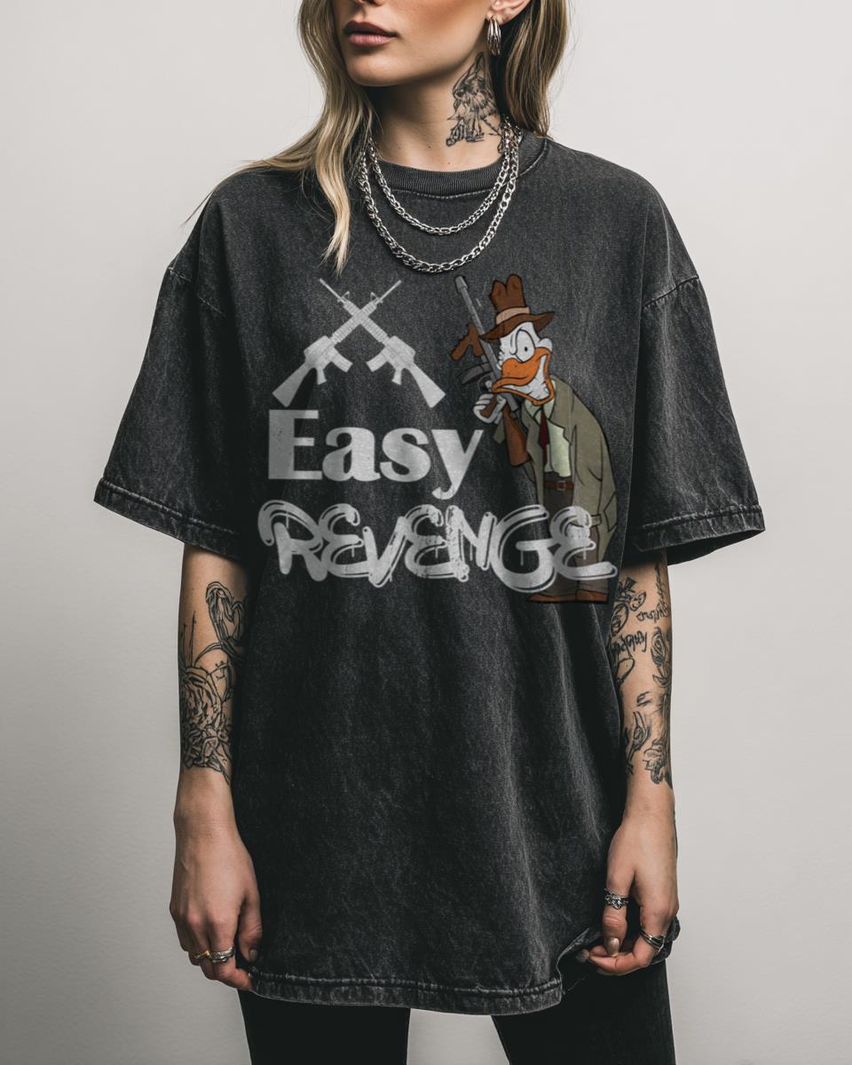 Ready for some ‘Easy Revenge’ with a side of quirky humor? Unleash your playful side with this ‘Easy Revenge’ graphic tee, featuring a hilarious gangster duck wielding a chainsaw! This design, inspired by anime and manga vibes, is perfect for those who love a good laugh and a touch of rebellious charm. Why You’ll Love…