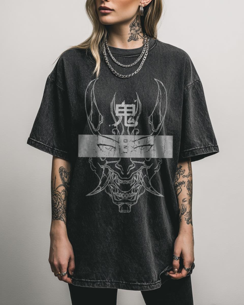 Intrigued by the powerful and mythical Oni demons of Japanese folklore? Embrace the fierce spirit of the Oni with this striking design, blending traditional Japanese demon imagery with a modern techwear aesthetic. Perfect for anime fans, manga enthusiasts, and those who appreciate Japanese culture. Unleash the Power of the Oni! Bold printed graphics of an…