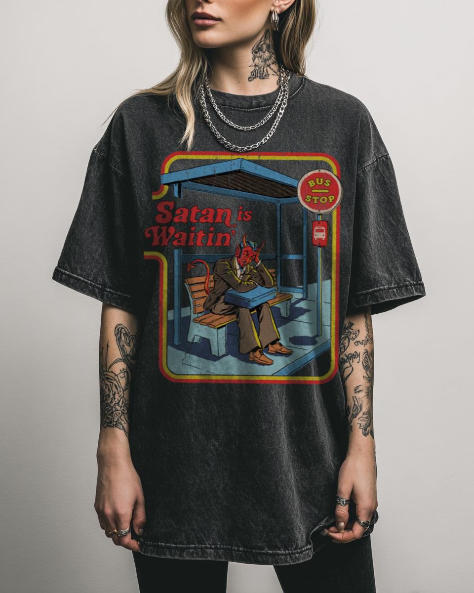 Do you have a taste for dark humor, retro aesthetics, and a touch of the occult? This ‘Satan is Waitin” design offers a darkly humorous and nostalgic scene, reminiscent of 70s and 80s vintage horror. Featuring Satan at a bus stop, it’s a witty and unique piece for those who appreciate retro style, occult themes,…