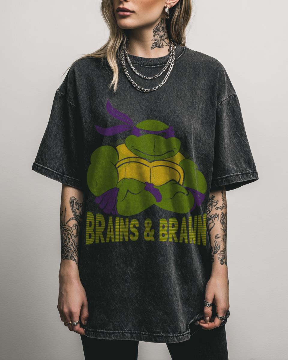 Ready for Some ‘Brains & Brawn’ with This TMNT Donatello Tee? Channel your inner genius and strength with the TMNT Donatello ‘Brains & Brawn’ 80s Cartoon Fan T-Shirt. This retro graphic tee is a perfect tribute to the Teenage Mutant Ninja Turtles, especially the intelligent Donatello. Crafted from 100% soft cotton in a cool black…
