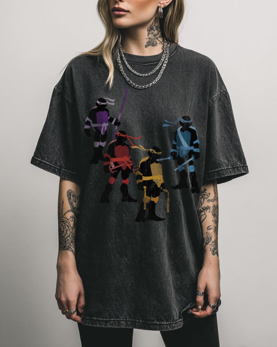 Ready to unleash some Turtle Power and relive your favorite 90s cartoon memories? Cowabunga! Grab this classic TMNT Ninja Turtles graphic tee and join Leonardo, Donatello, Michelangelo, and Raphael in their fight against evil. This design celebrates the iconic heroes in a half shell, perfect for fans of the beloved cartoon, comics, and movies who…