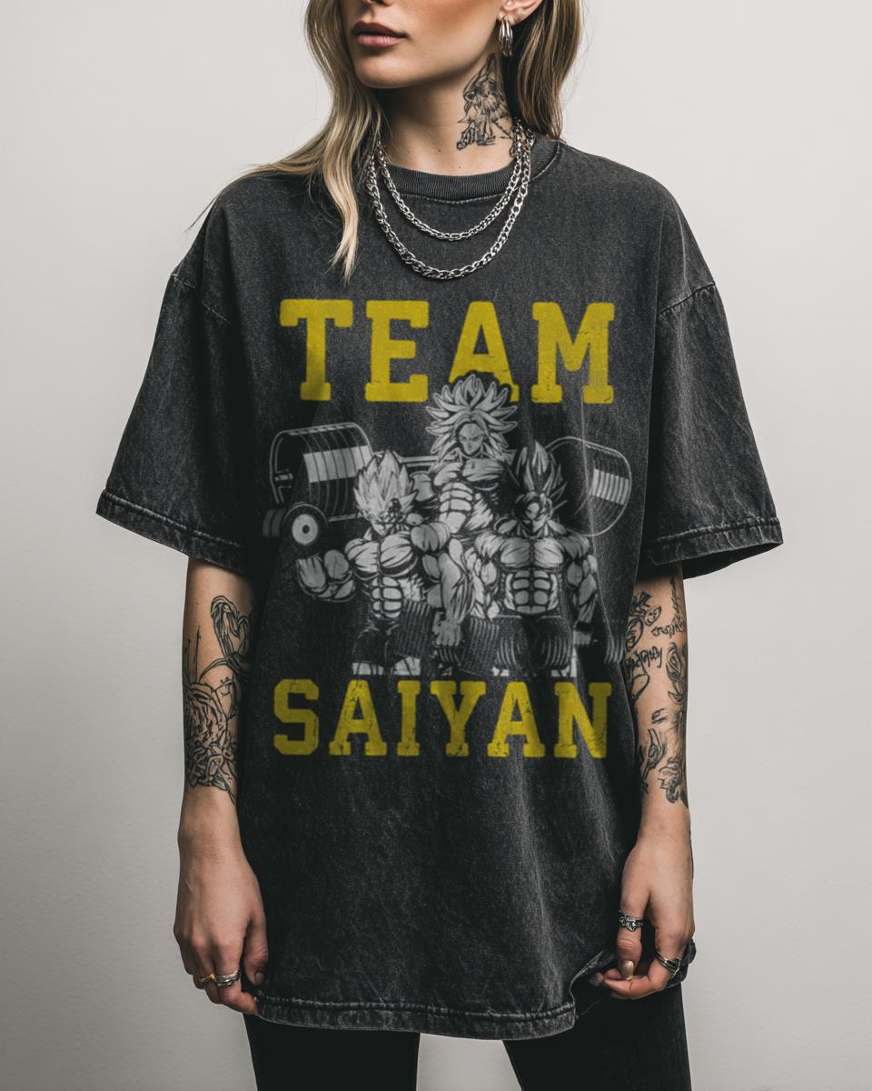 Why This Team Saiyan Lifting Tee is a Must-Have for Anime Fans? Unleash your inner Saiyan with this powerful **Team Saiyan graphic T-shirt**, featuring Broly, Vegeta, and Goku in an epic lifting pose. Crafted from 100% heavyweight cotton with a unique black acidwash finish, this tee is perfect for Dragon Ball Z and Super fans…