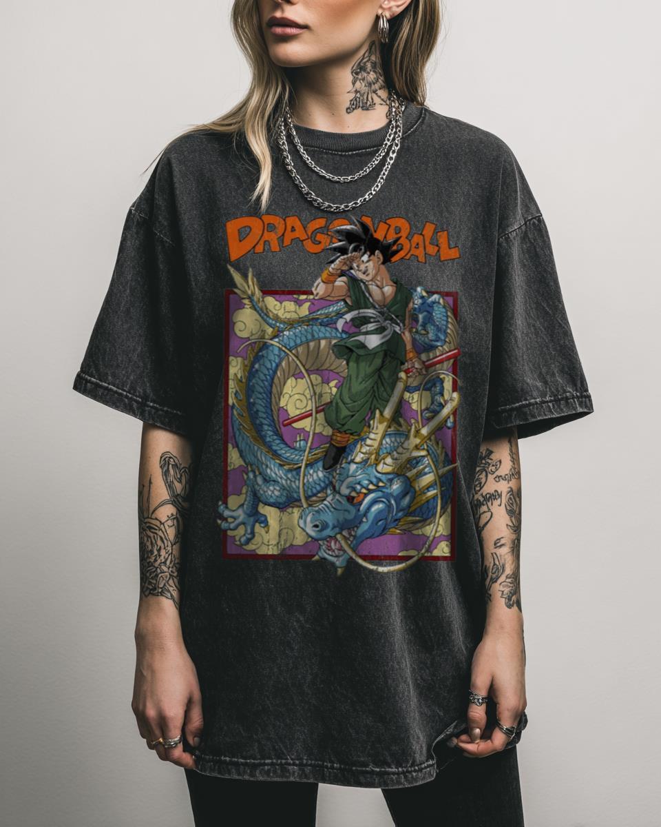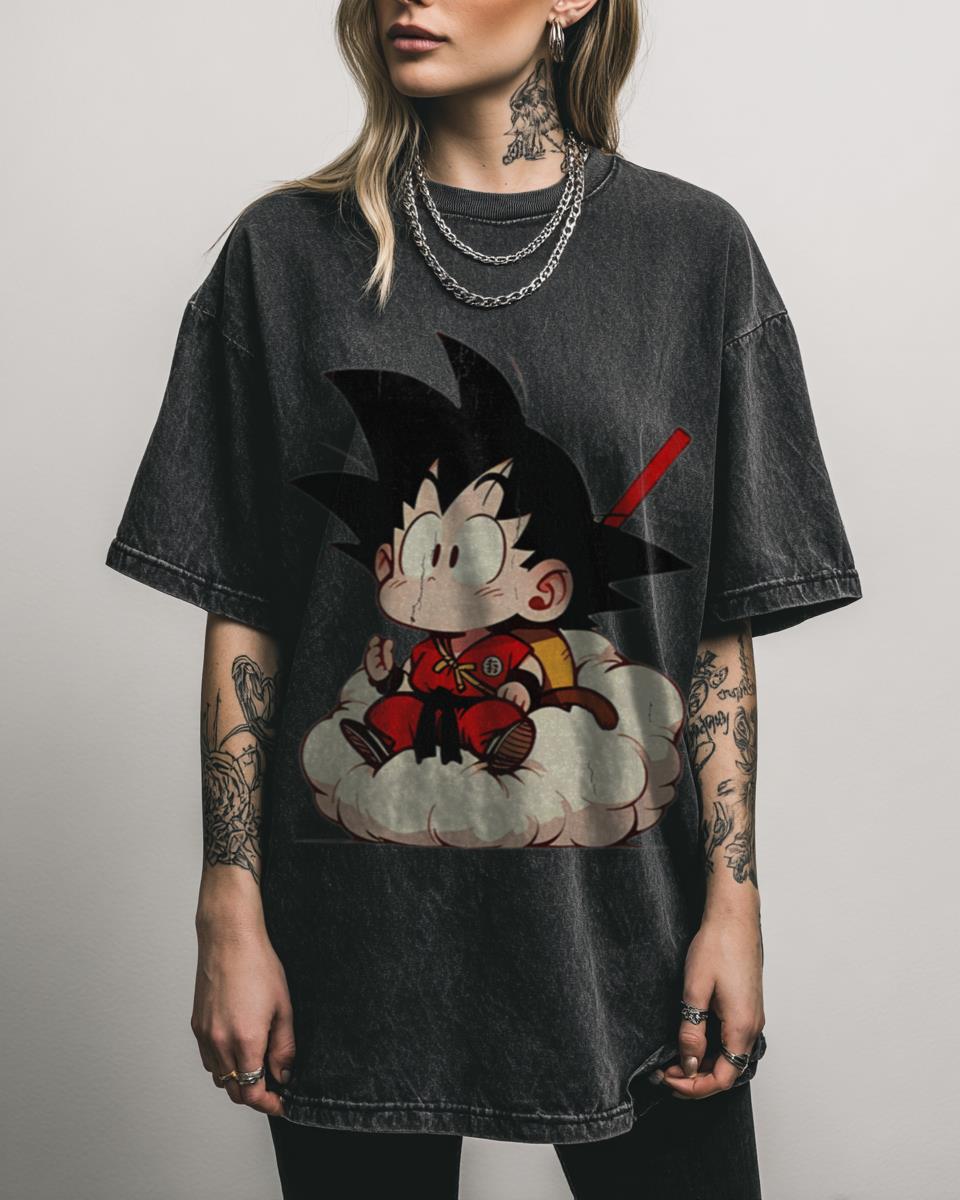 Journey back to the innocent beginnings of Dragon Ball with this charming graphic tee? Relive the classic adventures of young Goku flying on his trusty Nimbus Cloud with this retro graphic tee. This design evokes nostalgia for the early days of Dragon Ball, before the epic Super Saiyan battles. Why You’ll Love This: Charming young…