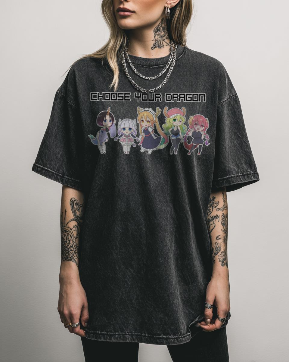 Which adorable dragon maid will you choose to brighten your day? Step into the charming and comical world of “Miss Kobayashi’s Dragon Maid” with this fun “Choose Your Maid Dragon” design! Featuring beloved characters like Tohru, Kanna, Elma, Ilulu, and Lucoa, this tee is perfect for fans of the heartwarming anime and manga series. Celebrate…