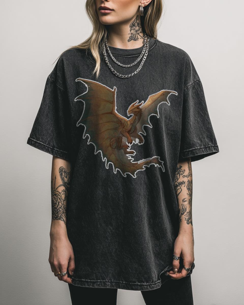 What Makes This Anemone Wings of Fire T-Shirt So Enchanting? Dive into the world of Pyrrhia with this Anemone Wings of Fire T-shirt, featuring a fan-created graphic of the Seawing dragonet with whimsical cotton candy elements. This captivating design on a black acidwash tee is perfect for any fan of Tui Sutherland’s beloved book series….