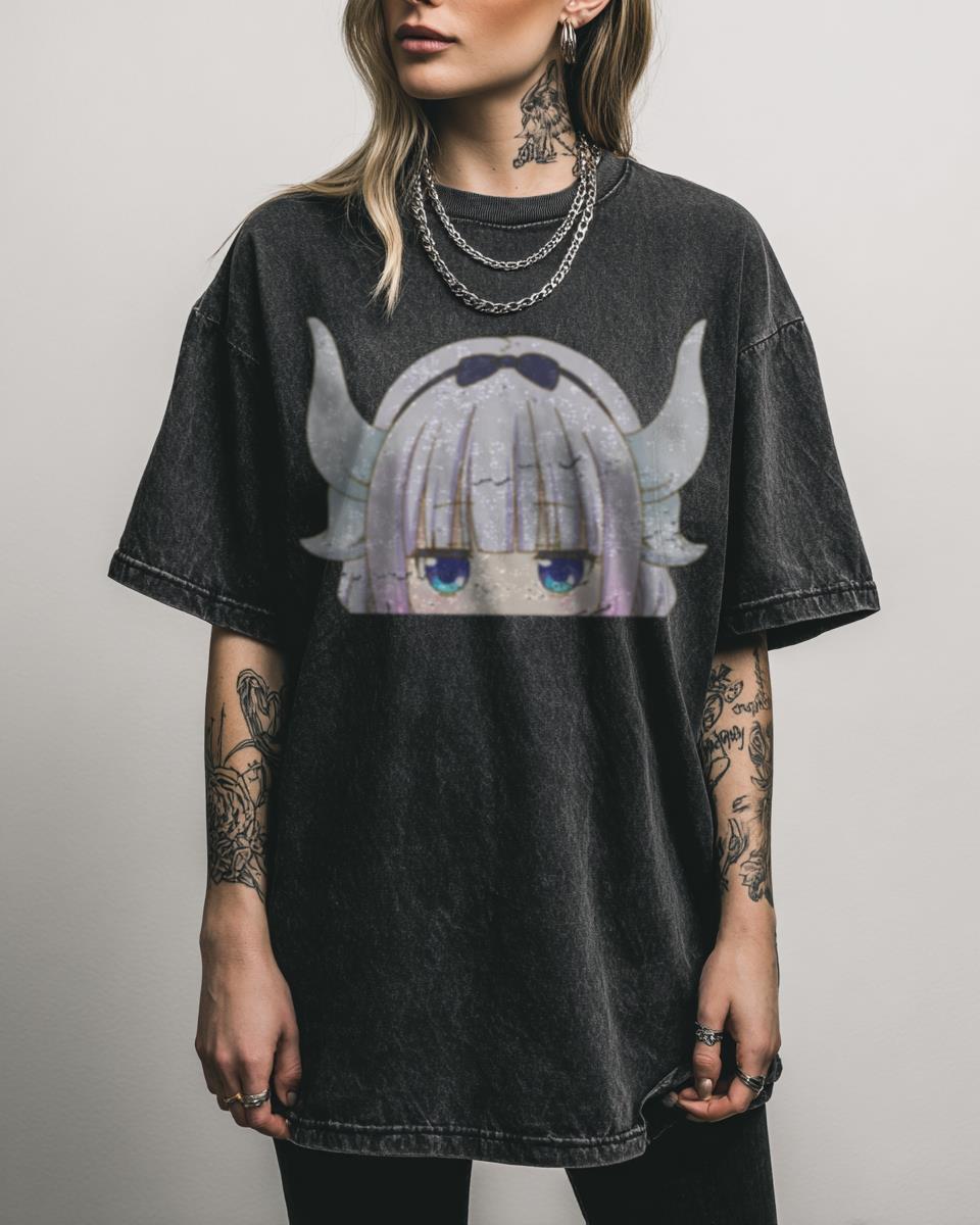 Looking for an adorable way to show your love for dragon maids? Meet the cutest dragon with this ‘Kanna Peeker’ t-shirt, featuring the beloved Kanna Kamui from ‘Miss Kobayashi’s Dragon Maid’. This charming design shows Kanna peeking out, bringing a touch of kawaii magic to your everyday wear. It’s the perfect gift for any fan…