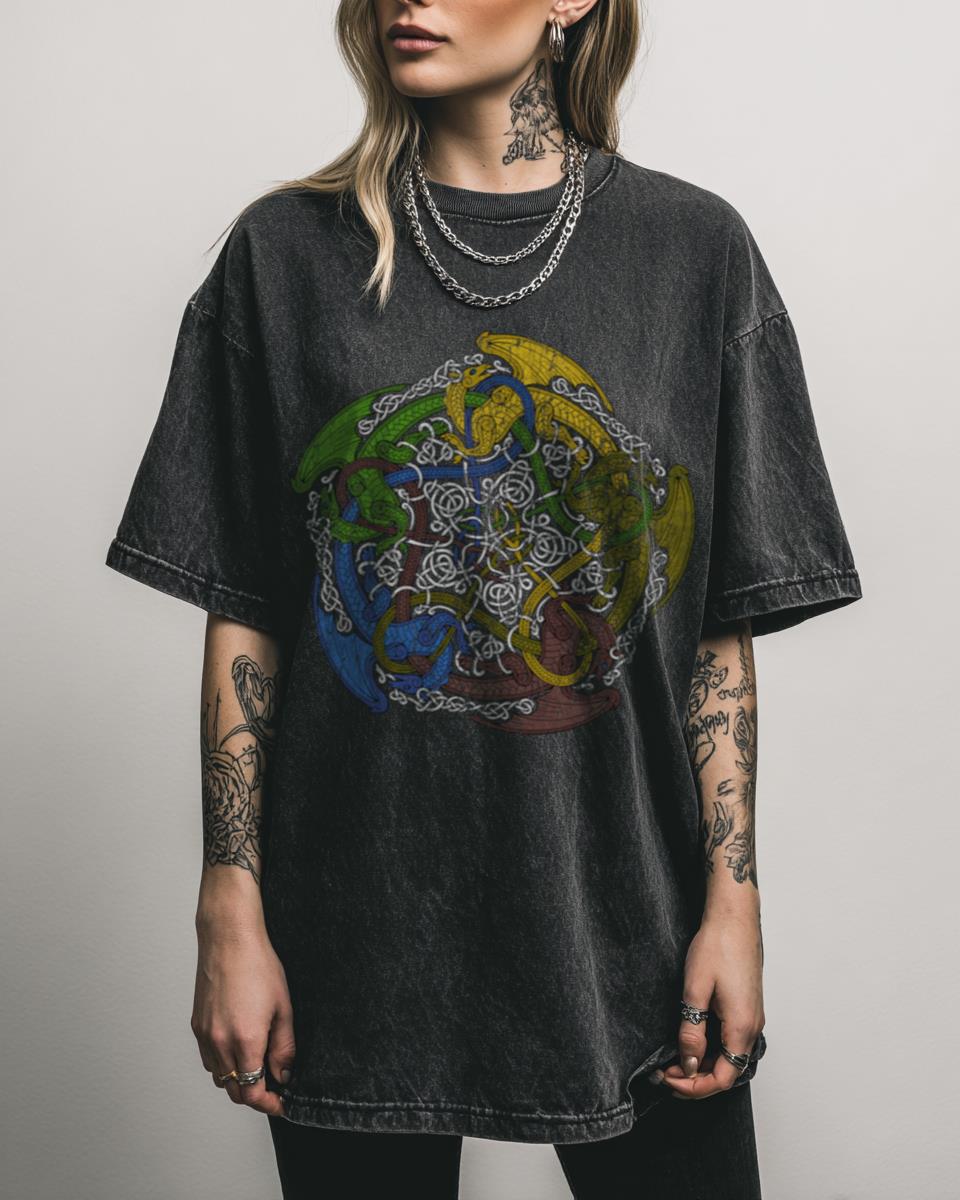 Unleash Your Inner Rider with This Five Dragons Celtic Knot T-Shirt! Embrace the ancient magic of Pern with this **Five Dragons Celtic Knot acidwash t-shirt**, a vibrant fan-created design inspired by the legendary Dragonriders of Pern. This graphic tee features an intricate knotwork pattern depicting five majestic dragons, perfect for enthusiasts of fantasy literature and…
