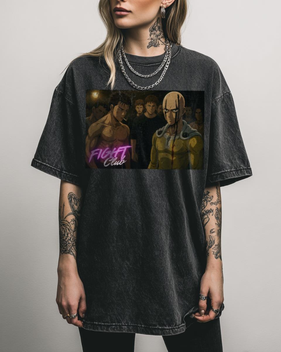 Ever wondered what would happen if Saitama joined Fight Club? This epic “Saitama Faces Tyler in Fight Club” design is an incredible anime crossover fanart, pitting the One-Punch Man against the iconic Tyler Durden. With a gritty, cel-shaded illustration set in a dark basement, it captures a dramatic, underground fight scene. Why You’ll Love This…