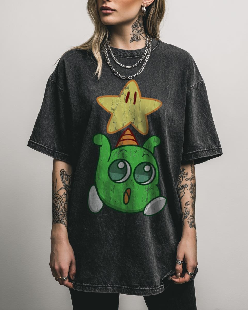 Remember the charming star-shaped hero, Yumetaro, from the classic Famicom game Mr. Gimmick? Relive the magic of retro gaming with this adorable ‘Yumetaro – Mr. Gimmick’ graphic tee! Featuring the cute star character from the beloved Sunsoft Famicom title, this design is perfect for vintage game enthusiasts and fans of charming pixel art. It’s a…