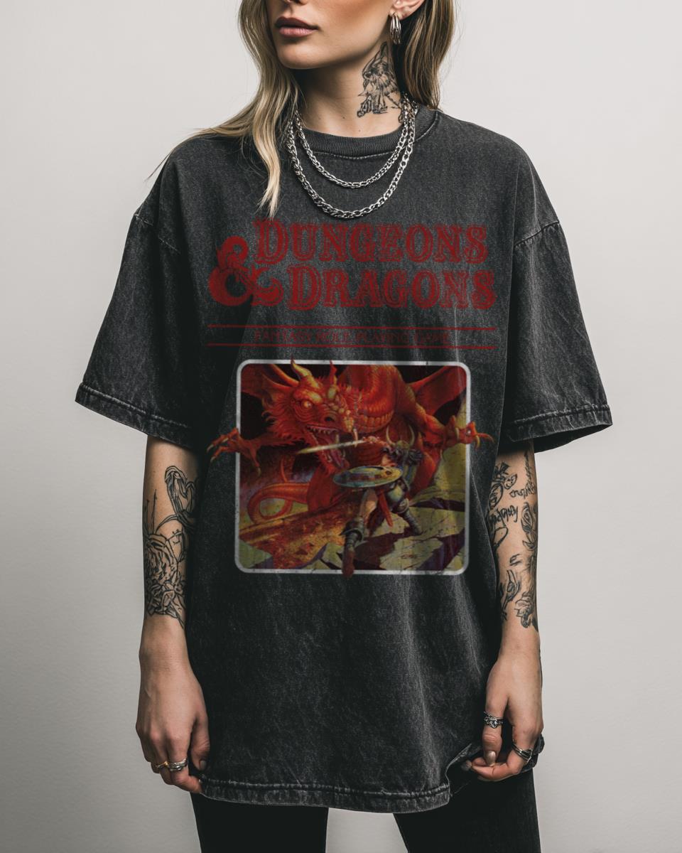 Ready to embark on legendary quests and roll for initiative? Show your allegiance to the greatest tabletop RPG of all time with this ‘Dungeons & Dragons Base Set Red Logo’ T-shirt! This classic design features the iconic D&D logo, instantly recognizable to Dungeon Masters, players, and fans of Critical Role everywhere. It’s a must-have for…