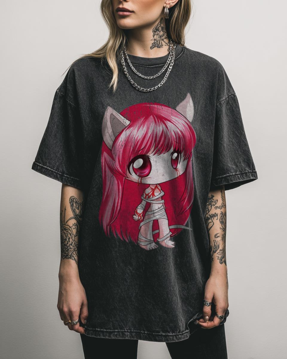 Are you captivated by the dark beauty and tragic story of Lucy from Elfen Lied? Embrace the powerful and enigmatic Diclonius with this ‘Lucy – Elfen Lied’ design! This tee features Lucy from the iconic and intense Elfen Lied anime and manga, perhaps in a chibi style that contrasts with the series’ dark themes. It’s…