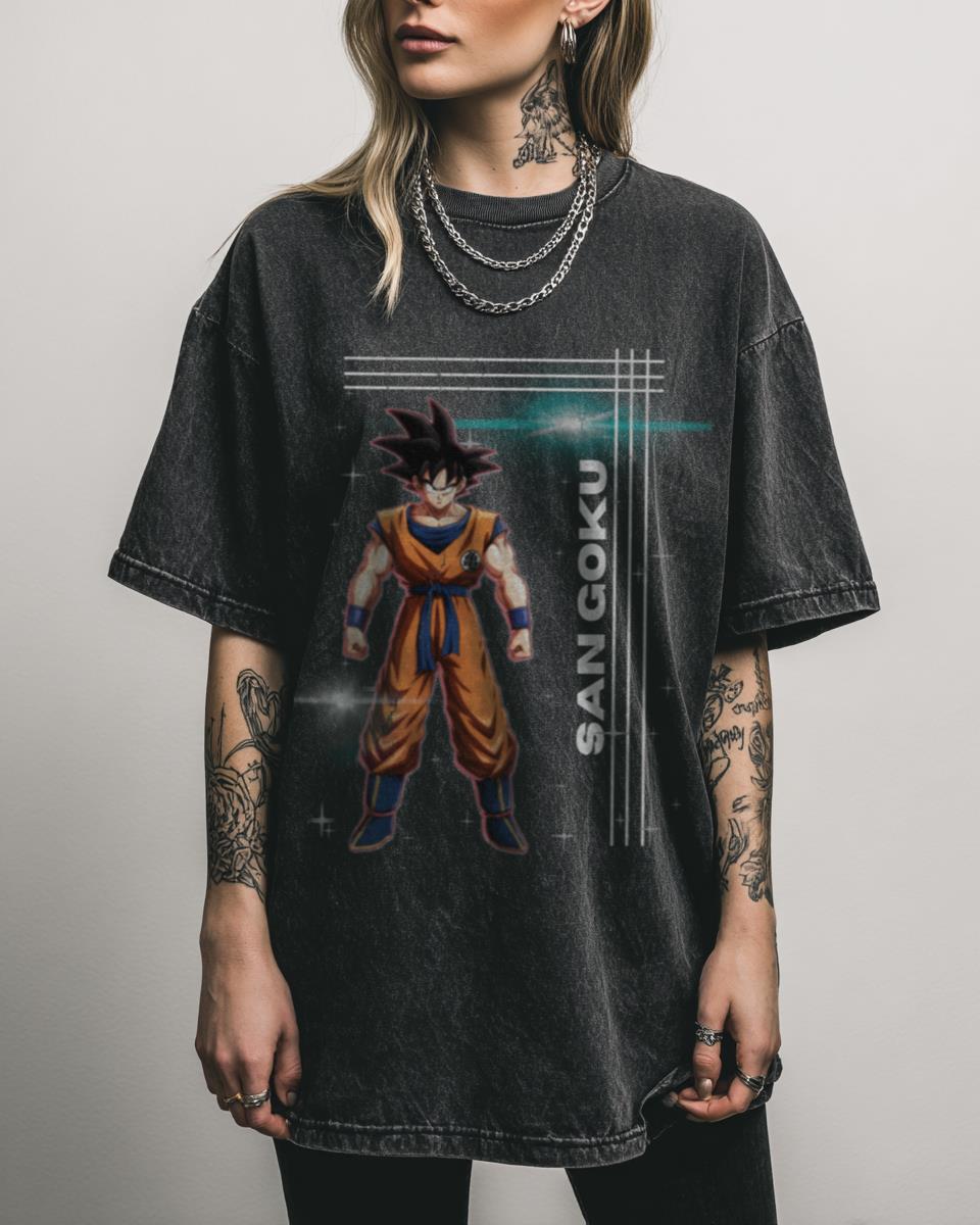 Unleash Dynamic Energy with This Goku Power Up T-Shirt? Feel the surge of power with this vibrant Goku Power Up T-Shirt, featuring an Anime Saiyan Flare graphic. This fan-created design captures San Goku in a moment of intense energy, surrounded by cosmic flares and stars, presented on a stylish black acid wash tee perfect for…