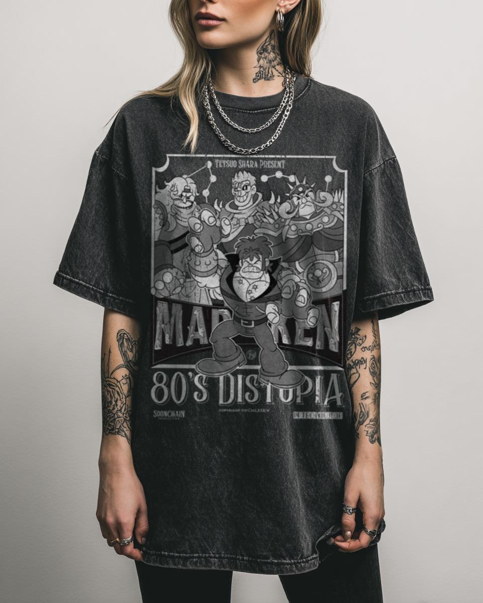 Ready to survive in a post-apocalyptic wasteland? Unleash the power of Hokuto Shinken with this awesome ‘Hokuto No Ken 80s Dystopia’ graphic t-shirt. This design pays tribute to ‘Fist of the North Star’ and its iconic hero Kenshiro, capturing the gritty, post-apocalyptic aesthetic of the beloved 80s anime and manga. A must-have for fans of…