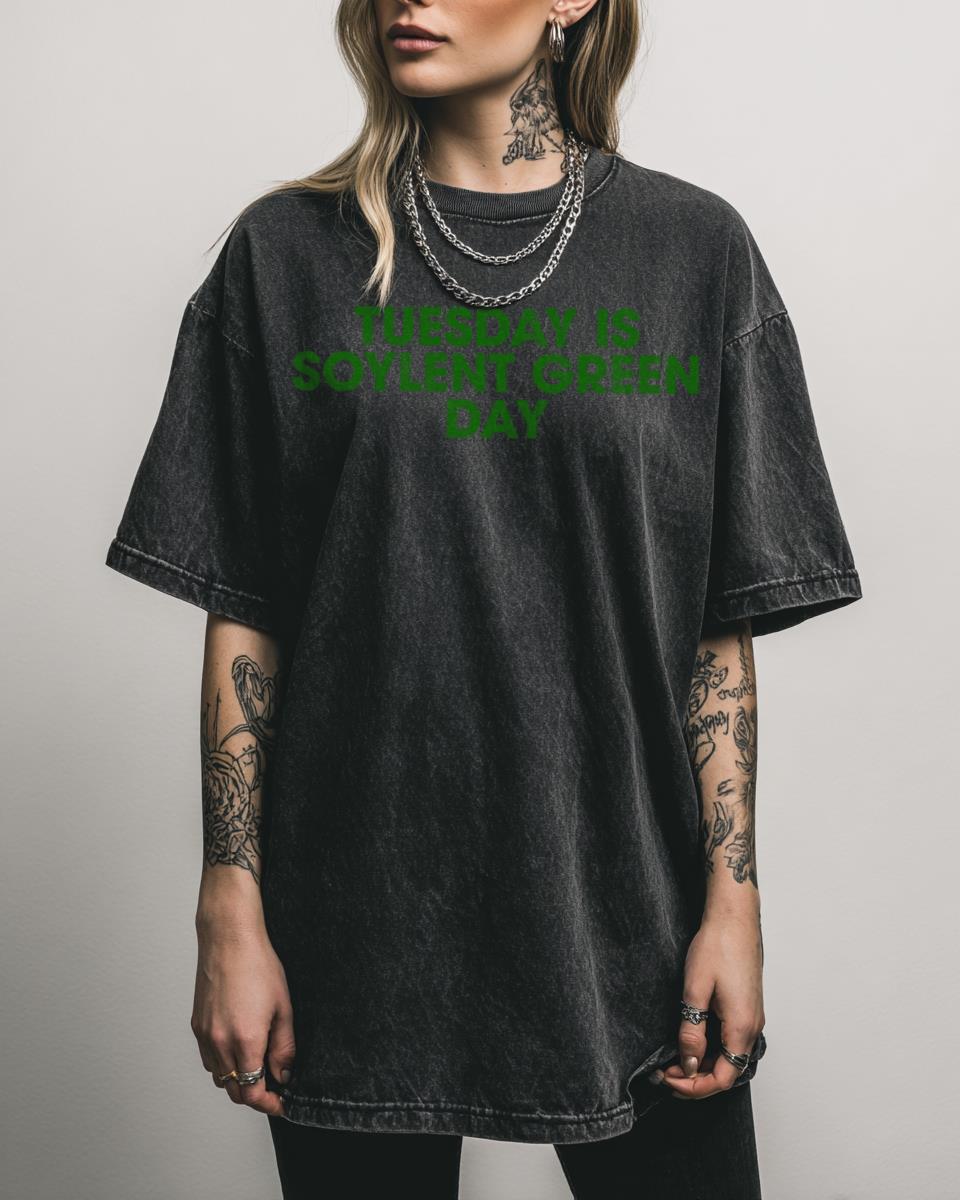 Remember the chilling twist of a classic sci-fi film? This “Tuesday is Soylent Green Day” design is a nostalgic and thought-provoking nod to the iconic 1973 dystopian movie. It’s a perfect conversation starter for fans of vintage science fiction, apocalyptic themes, and cinematic history. Why You’ll Love This: A cult classic tee for the discerning…