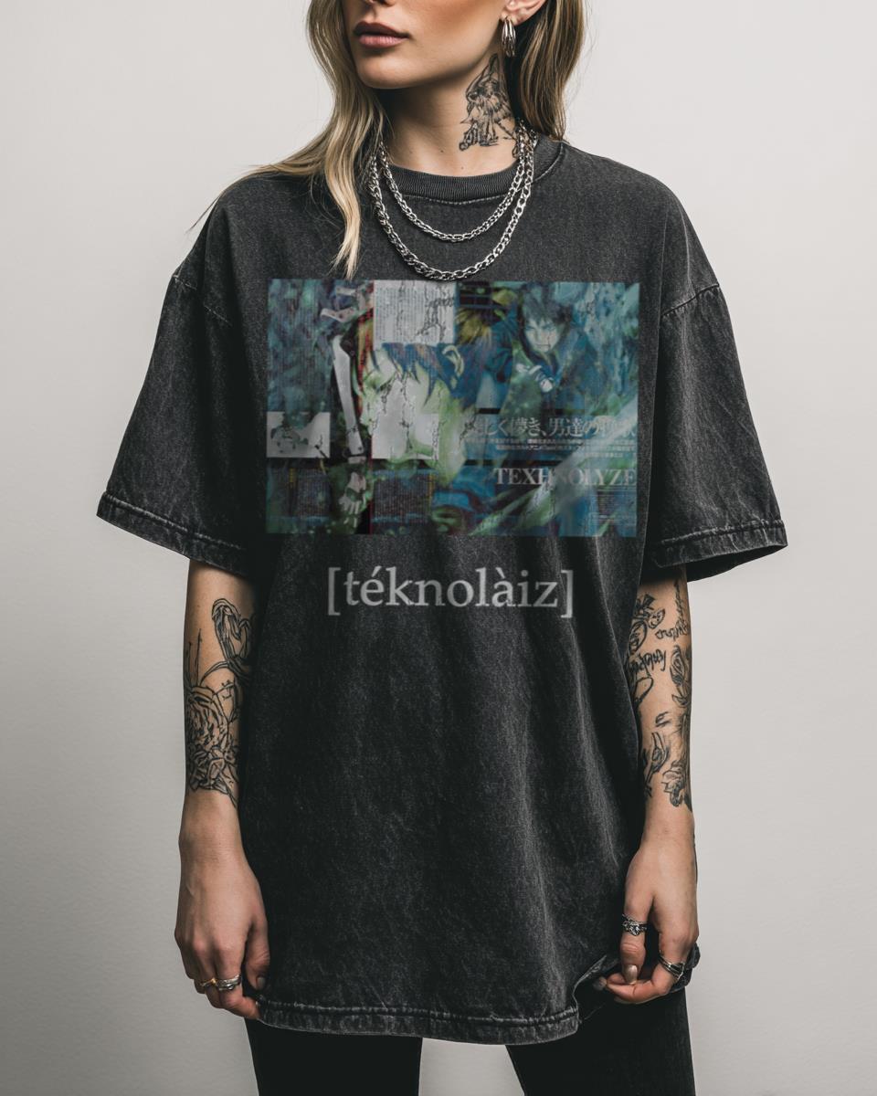 Are you drawn to the depths of psychological anime and cyberpunk narratives? Dive into the bleak yet captivating world of ‘Texhnolyze’ with this T-shirt! This design pays homage to the critically acclaimed anime series directed by Hiroshi Hamasaki, known for its deep psychological themes and dystopian cyberpunk setting. Featuring characters like Ichise and Ran, it’s…
